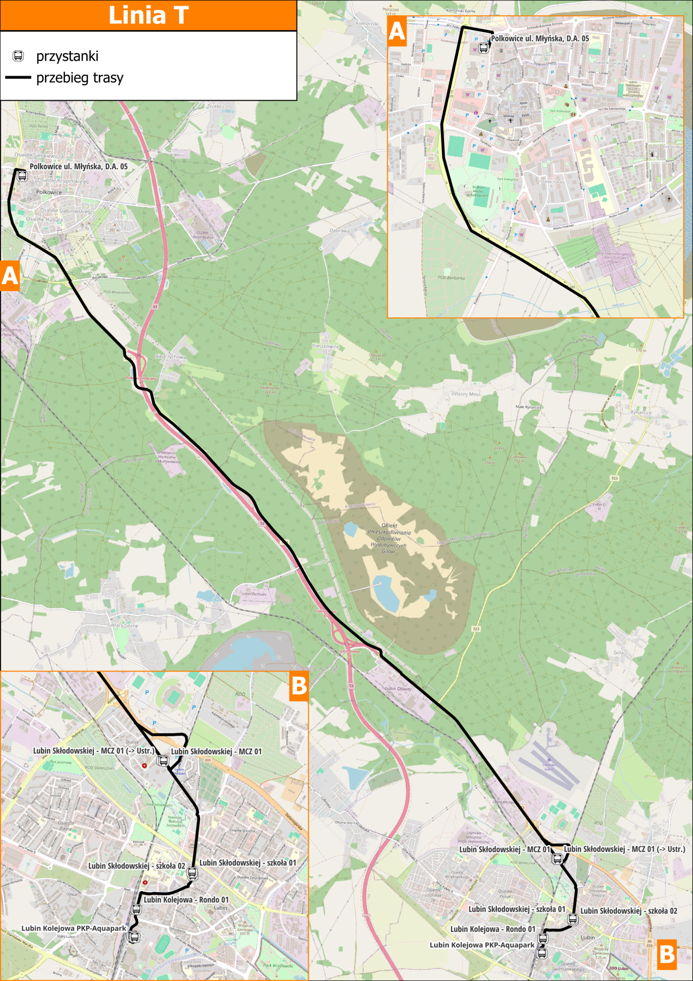 Uruchomienie linii „T” wiąże się również z modyfikacją dotychczasowych kursów linii 110, która nadal będzie obecna na trasie Lubin – Polkowice, ale z większą liczbą przystanków pośrednich.