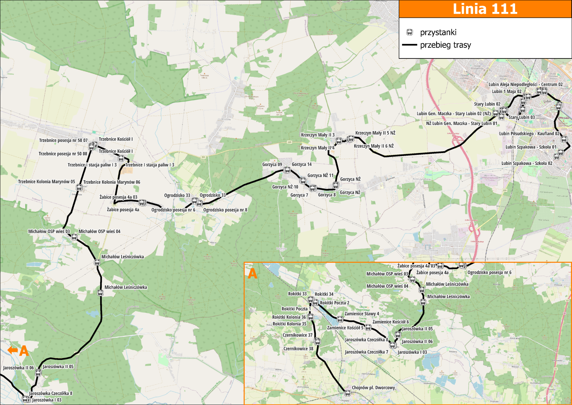 Tego samego dnia wystartuje również nowa linia 111, której trasa została zaplanowana z myślą o uczniach i mieszkańcach gminy Chojnów. Autobus będzie wyjeżdżać z Chojnowa około godziny 6:30 i przez teren gminy Chocianów dotrze do Lubina przed godziną 8:00. Zatrzyma się na kilku przystankach w mieście, kończąc bieg przy ul. Szpakowej, umożliwiając tym samym dogodny dojazd do szkół i zakładów pracy. Pilotażowo linia kursować będzie – dwa razy dziennie w dni robocze (rano i po południu).