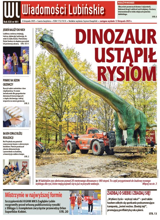 W nowym wydaniu najstarszego bezpłatnego lubińskiego tygodnika piszemy również m.in. o: Powiatowym Dniu Seniora obchodzonym w Centrum Kultury Muza w Lubinie, o tym, komu przysługuje bon energetyczny czy też o konferencji zdrowotnej podsumowującej tegoroczną kampanię „Jesteś ważna. Zbadaj się!”.