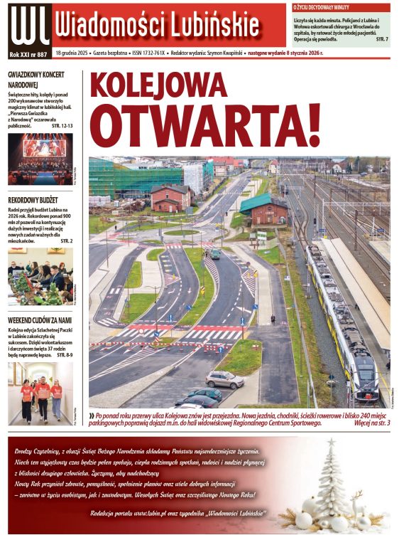 W nowym wydaniu najstarszego bezpłatnego lubińskiego tygodnika piszemy również m.in. o: gwiazdkowym koncercie Narodowej Orkiestry Dętej w hali widowiskowej Regionalnego Centrum Sportowego, o rekordowym budżecie dla Lubina, o 44. rocznicy wprowadzenia stanu wojennego czy też o postępach w budowie wybiegu dla nowych mieszkańców zoo.
