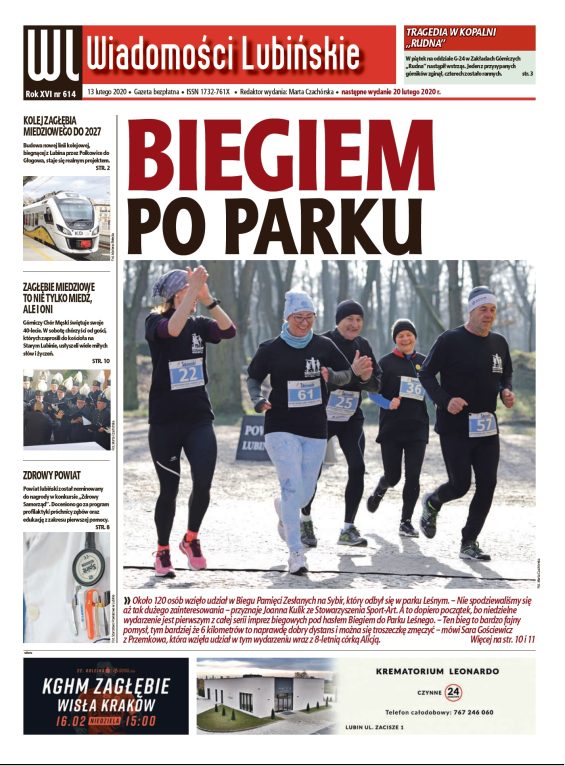 W nowym wydaniu najstarszego bezpłatnego lubińskiego tygodnika piszemy między innymi o tragicznym wypadku w kopalni Rudna, procesie trenera boksu, który został oskarżony o molestowanie 17-letniej zawodniczki, przenosinach ścinawskiej szkoły, a także charytatywnym koncercie, który odbędzie się w Lubinie w najbliższy piątek.