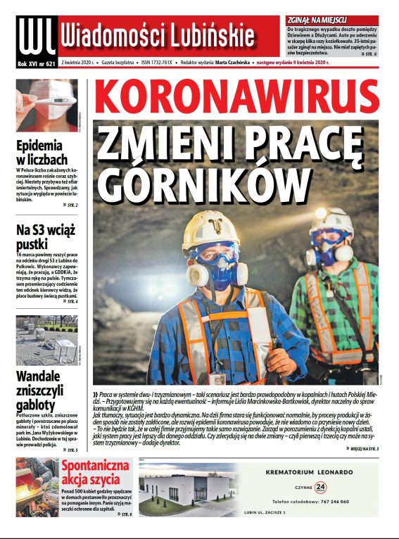 W nowym numerze najstarszego bezpłatnego lubińskiego tygodnika przeczytacie też między innymi o kolejnych ograniczeniach wprowadzonych przez rząd, przetargu na nowe pociągi dla Kolei Dolnośląskich, budowie S3, a także wandalach, którzy dokonali zniszczeń w parku im. Wyżykowskiego, zamknięciu Starostwa Powiatowego w Lubinie czy akcjach społecznych związanych w walką z epidemią.