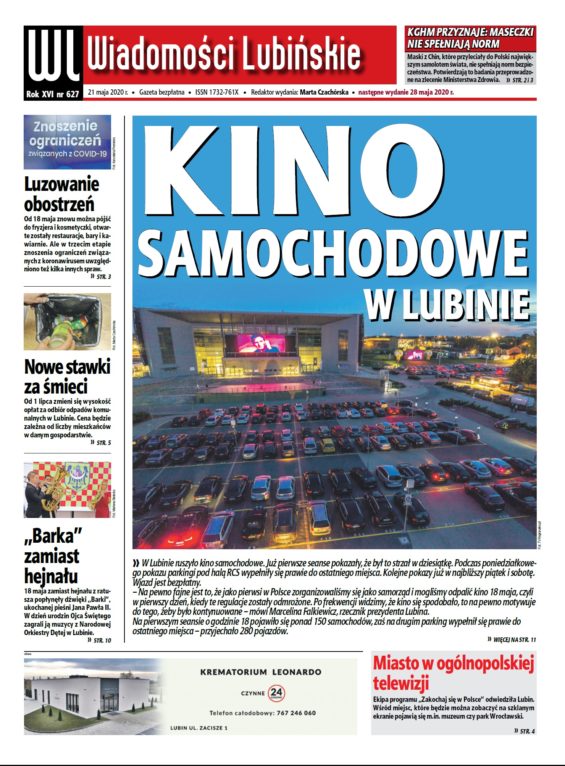 Już jutro, 21 maja, ukaże się kolejny numer „Wiadomości Lubińskich”. Piszemy w nim między innymi o kinie samochodowym, które właśnie ruszyło w Lubinie.