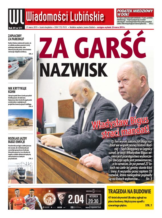 Już w czwartek, 21 marca, ukaże się kolejny numer „Wiadomości Lubińskich”. Tematem tego numeru jest sądowy wyrok o historycznym znaczeniu – wójt gminy Rudna, Władysław Bigus po prawie trzydziestu latach będzie musiał odejść z urzędu.