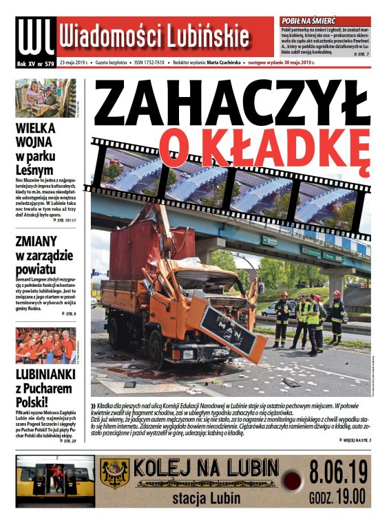W najnowszym wydaniu najstarszego bezpłatnego lubińskiego tygodnika piszemy również między innymi o nietypowym wypadku, do jakiego doszło w naszym mieście, rozbudowie plaży kompleksu basenów odkrytych, zmianach we władzach powiatu oraz ciekawej akcji w jednym z lubińskich marketów. Ponadto przygotowaliśmy całą stronę poświęconą lubińskim piłkarkom ręcznym, które właśnie zdobyły Puchar Polski.