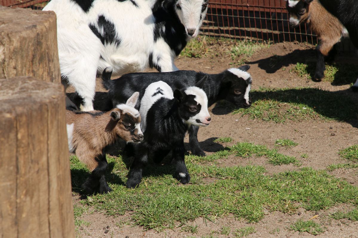 Niedawno w zoo urodziło się pięć kóz karłowatych – dwa capy i trzy kozy. Jak mówią opiekunowie, maluchy są rozbrykane i radosne. Codziennie wypuszczane są na wybieg, gdzie bawią się pod czujnym okiem swoich mam.