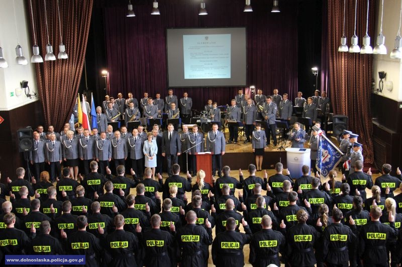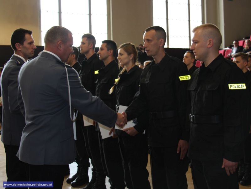 Akty ślubowania wręczał inspektor Arkadiusz Golanowski, komendant wojewódzki policji we Wrocławiu.