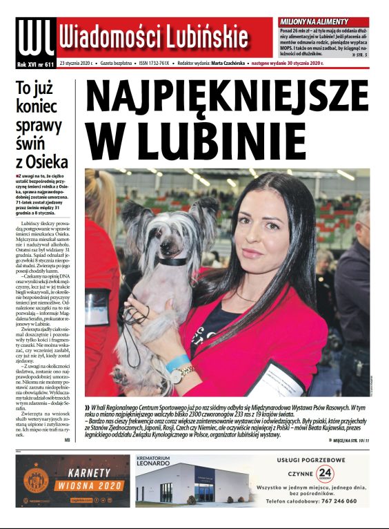 Już jutro, 23 stycznia, ukaże się nowe wydanie „Wiadomości Lubińskich”. Znajdziecie w nim między innymi fotorelację z międzynarodowej wystawy psów, jaka odbyła się w Lubinie.
