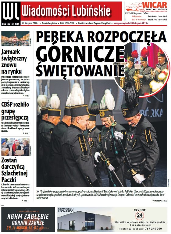 Śmiertelny wypadek drogowy koło Rynarcic, w którym życie straciła 34-letnia kobieta, jarmark bożonarodzeniowy znowu na rynku, rozbicie przez CBŚP grupy przestępczej czy podpisana wreszcie umowa na dokończenie feralnego odcinka S3 to tylko niektóre ze spraw poruszanych w 604. numerze najstarszego bezpłatnego tygodnika w Lubinie.