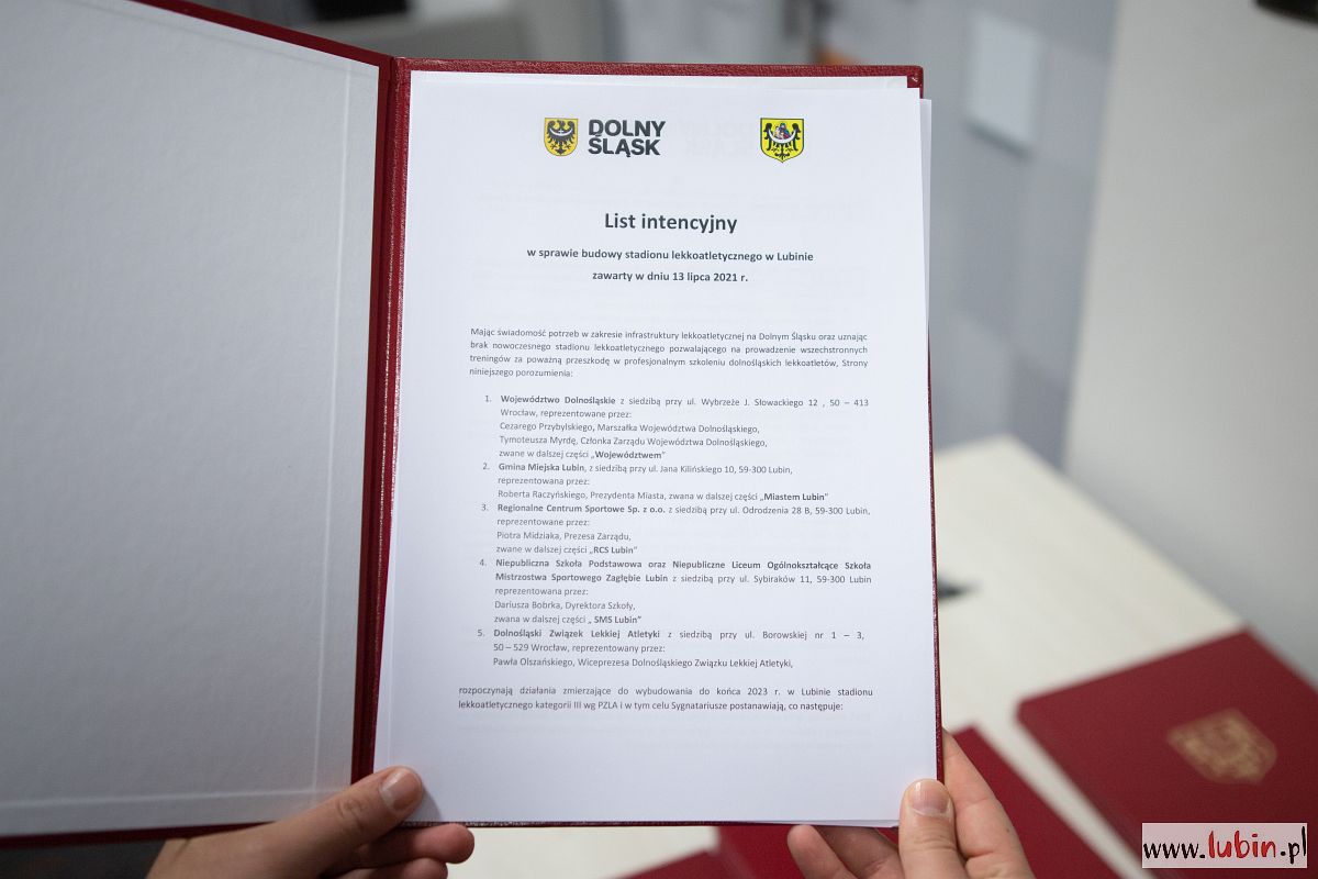 W Lubinie w ciągu najbliższych trzech lat powstanie nowy stadion lekkoatletyczny oraz hala lodowa. Dziś list intencyjny w tej sprawie podpisały władze Lubina oraz województwa dolnośląskiego, które będą wspólnie finansować realizację inwestycji. – Gdy skończymy te projekty, nikt w tej części Polski nie będzie dysponował tak szeroką ofertą rekreacji czy też sportu jak Lubin – mówi prezydent Robert Raczyński, zapowiadając na wrzesień prezentację kolejnego przedsięwzięcia: aquaparku wraz z centrum rehabilitacyjnym dla seniorów.
