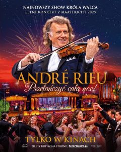 Najnowszy koncert „Przetańczyć całą noc!” uświetnią znakomici goście króla walca, z rozwijającą swoją niezwykłą karierę Emmą Kok na czele. Wielka miłość André Rieu do polskiej publiczności zaowocowała po raz kolejny wyjątkową gratką dla wszystkich widzów znad Wisły: gospodynią i prowadzącą show maestra znów będzie Maja Jasińska, flecistka z jego Orkiestry Johanna Straussa. Tegoroczny kinowy koncert będzie ze wszech miar niepowtarzalny, bowiem w 2025 roku przypada 200. rocznica urodzin Johanna Straussa – patrona wspaniałej orkiestry André Rieu i osobistego idola samego maestra. W takich okolicznościach Straussowski walc „Nad pięknym modrym Dunajem” wybrzmi jeszcze donioślej i piękniej. Poza tym najsłynniejszym walcem świata posłuchasz również innych klasycznych melodii, a także premierowych wykonań szlagierów muzyki pop oraz filmowej. Daj się porwać do tańca najbardziej romantycznemu kinowemu wydarzeniu roku! Zabierz do kina drugą połowę, rodzinę, przyjaciół oraz znajomych! Obejmij najbliższe Ci osoby w tali i w rytm muzyki André Rieu przetańczcie całą noc!