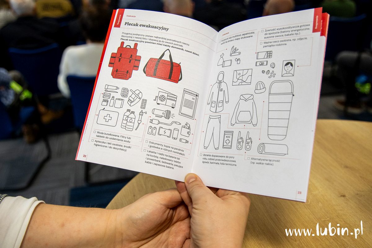 Wszyscy, którzy przyszli na dzisiejsze otwarte spotkanie, jakie odbyło się w Inkubatorze Przedsiębiorczości w Lubinie, mogli dowiedzieć się, jak reagować w sytuacjach zagrożenia, jak budować odporność społeczną i jak przygotować siebie oraz rodzinę na nieprzewidziane zdarzenia. Ponadto można było zapoznać się z „Poradnikiem bezpieczeństwa” przygotowanym przez Ministerstwo Spraw Wewnętrznych i Administracji, Ministerstwo Obrony Narodowej i Rządowe Centrum Bezpieczeństwa, porozmawiać z przedstawicielami lokalnego Centrum Zarządzania Kryzysowego i straży pożarnej, a także zobaczyć, co powinien zawierać przykładowy plecak ewakuacyjny.