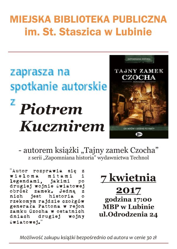 O swojej książce oraz legendach i historiach związanych z zamkiem Czocha opowie lubinianom Piotr Kucznir. Spotkanie z autorem publikacji „Tajny zamek Czocha” odbędzie się w najbliższy piątek, 7 kwietnia w miejskiej bibliotece.
