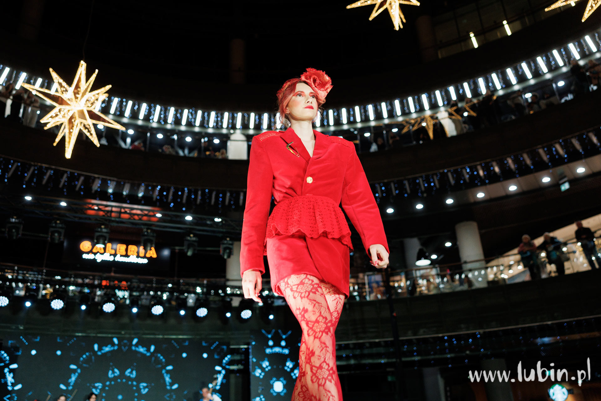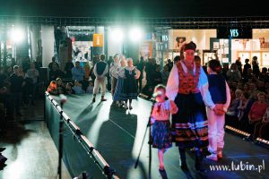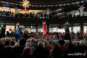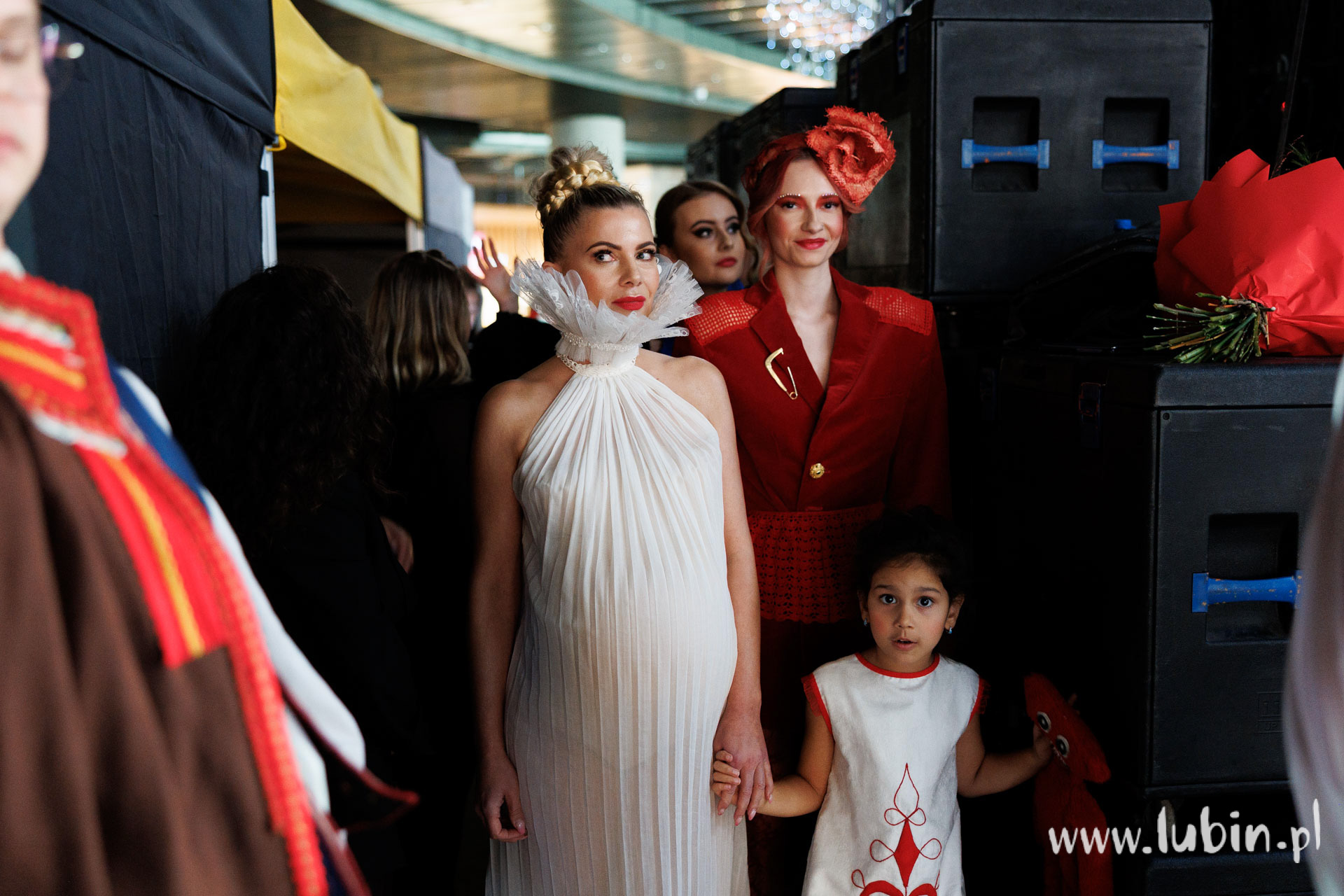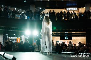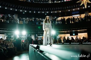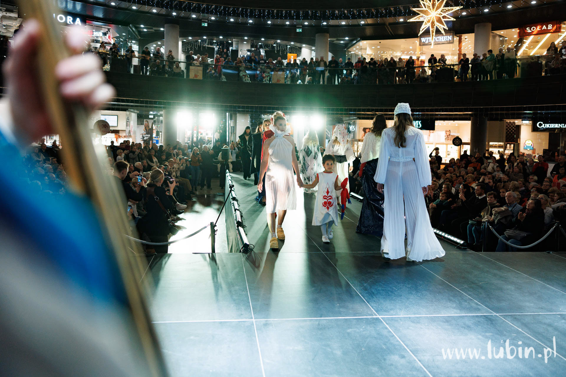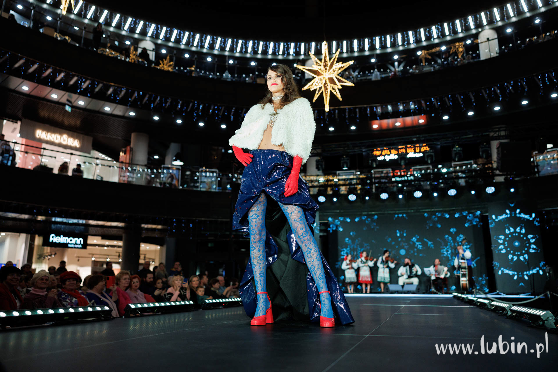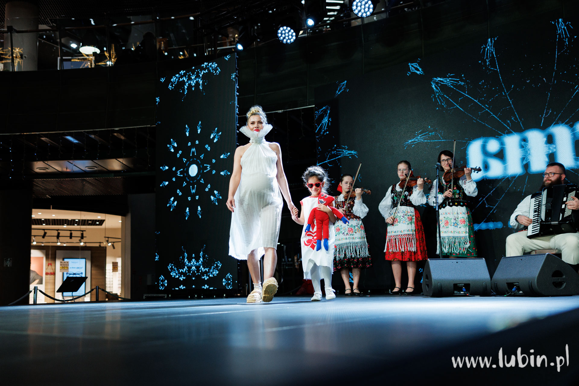 Dziś tej nowoczesności było całkiem sporo. CDT wyszło ze swoim przedsięwzięciem w przestrzeń galerii handlowej Cuprum Arena. W jej atrium stanęła scena i wybieg, na którym odbył się niezwykły pokaz mody i energetyczny koncert Łemkowskiego Zespołu Pieśni i Tańca „Łastiwoczka”. Publiczność zgromadziła się wokół sceny, a także na wyższych piętrach galerii, by na początek zobaczyć kolekcję „Rusynka” Anny Marii Zygmunt, inspirowaną tradycyjnymi ubiorami łemkowskimi.