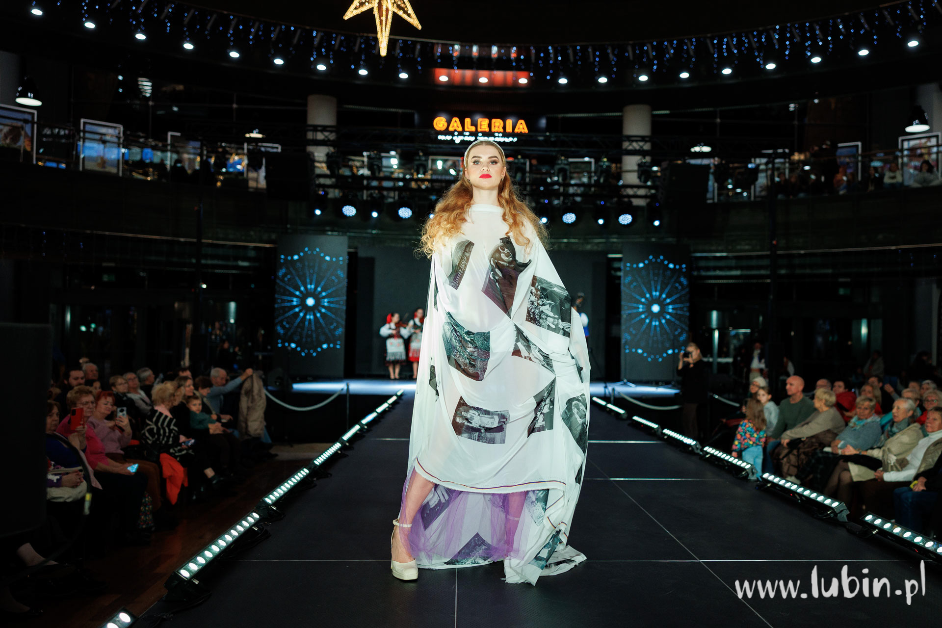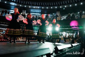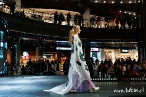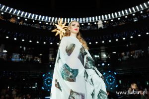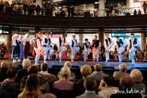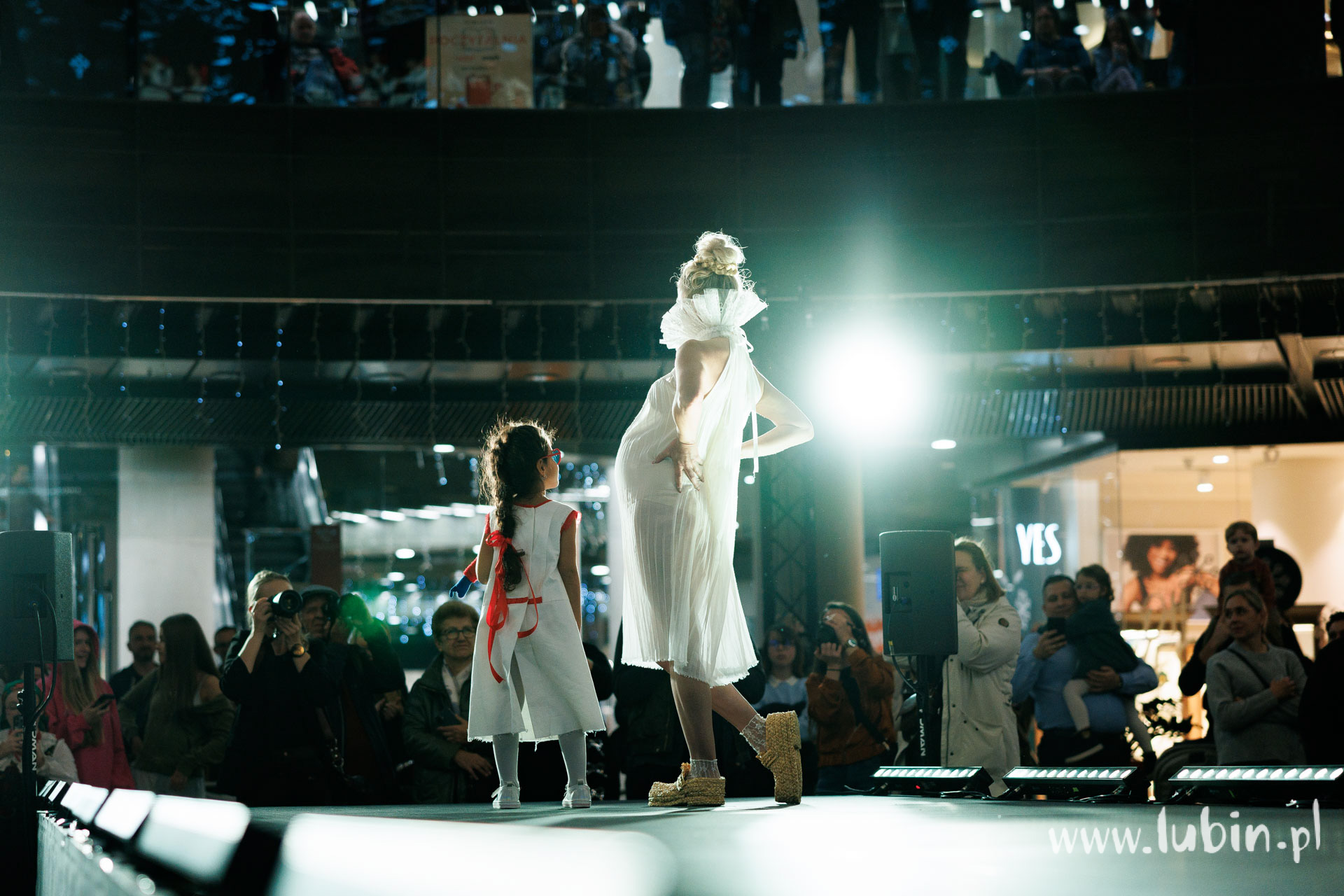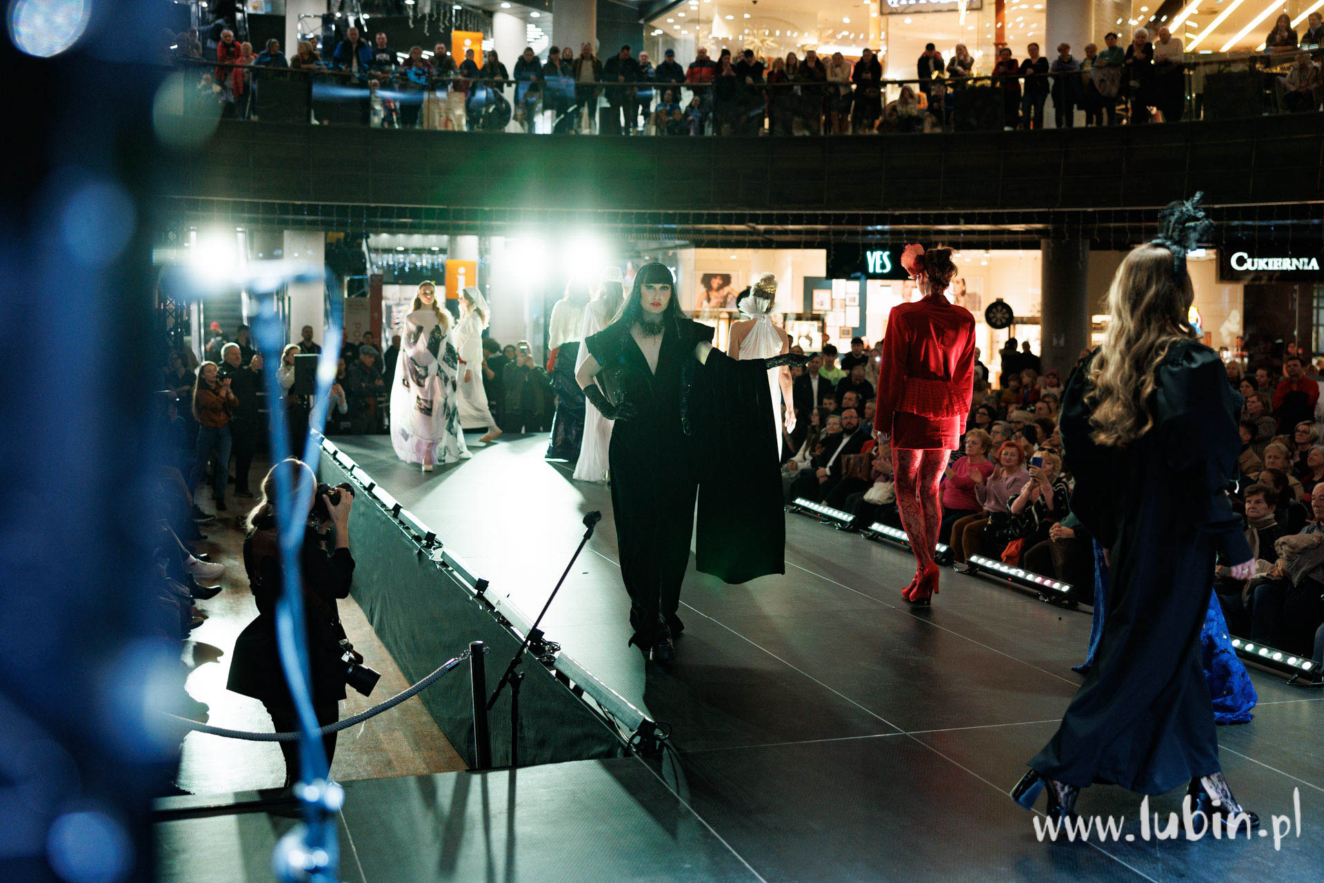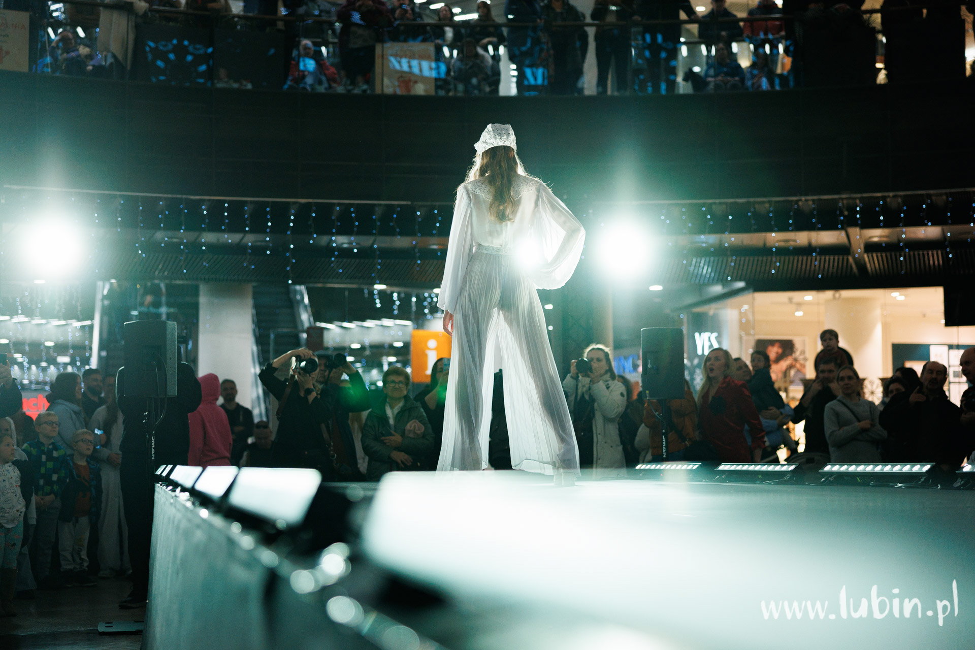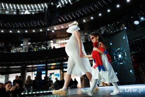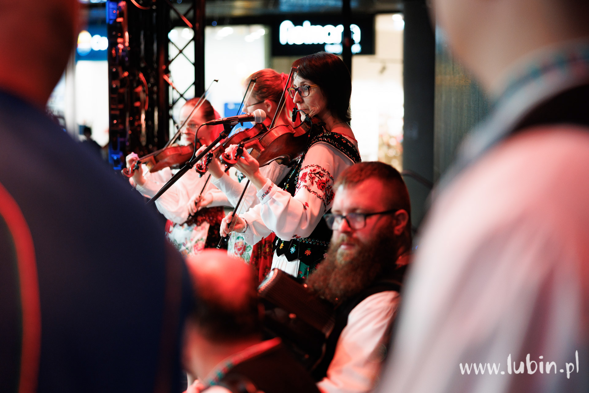 Dziś tej nowoczesności było całkiem sporo. CDT wyszło ze swoim przedsięwzięciem w przestrzeń galerii handlowej Cuprum Arena. W jej atrium stanęła scena i wybieg, na którym odbył się niezwykły pokaz mody i energetyczny koncert Łemkowskiego Zespołu Pieśni i Tańca „Łastiwoczka”. Publiczność zgromadziła się wokół sceny, a także na wyższych piętrach galerii, by na początek zobaczyć kolekcję „Rusynka” Anny Marii Zygmunt, inspirowaną tradycyjnymi ubiorami łemkowskimi.