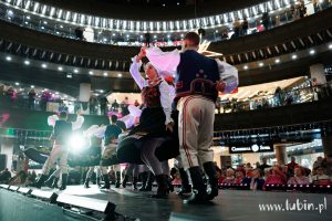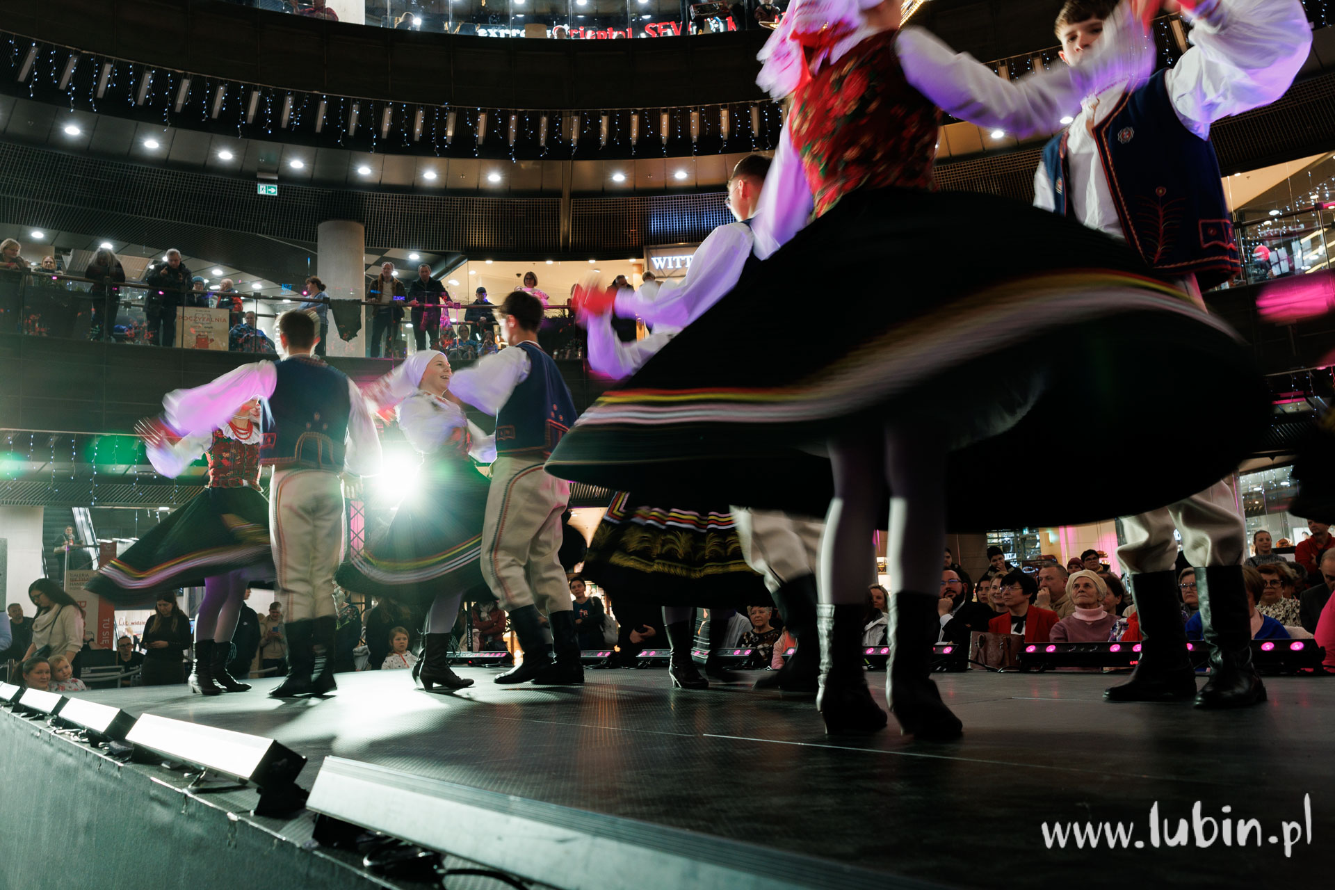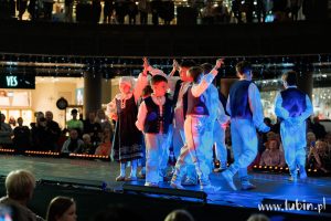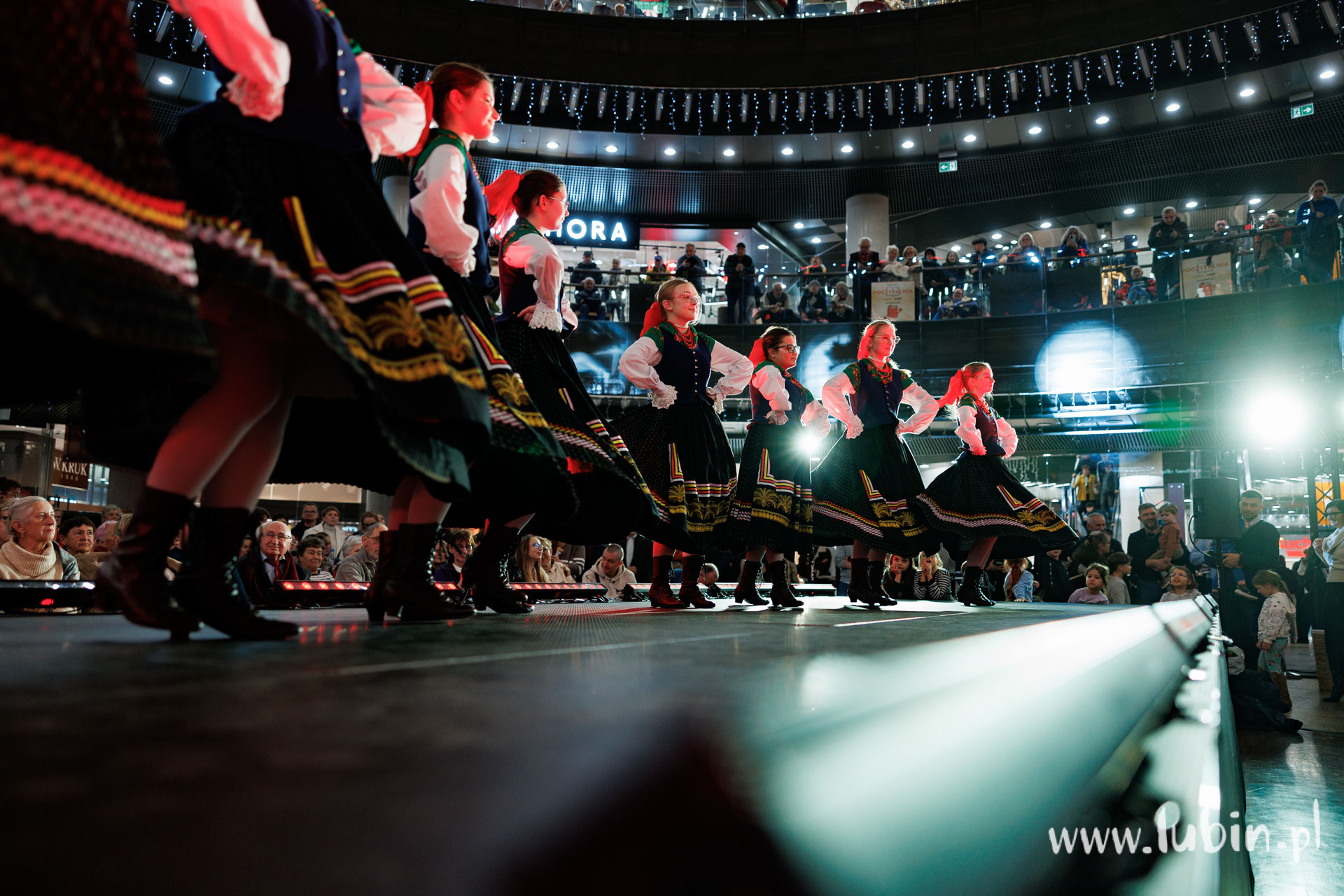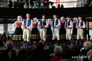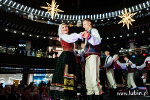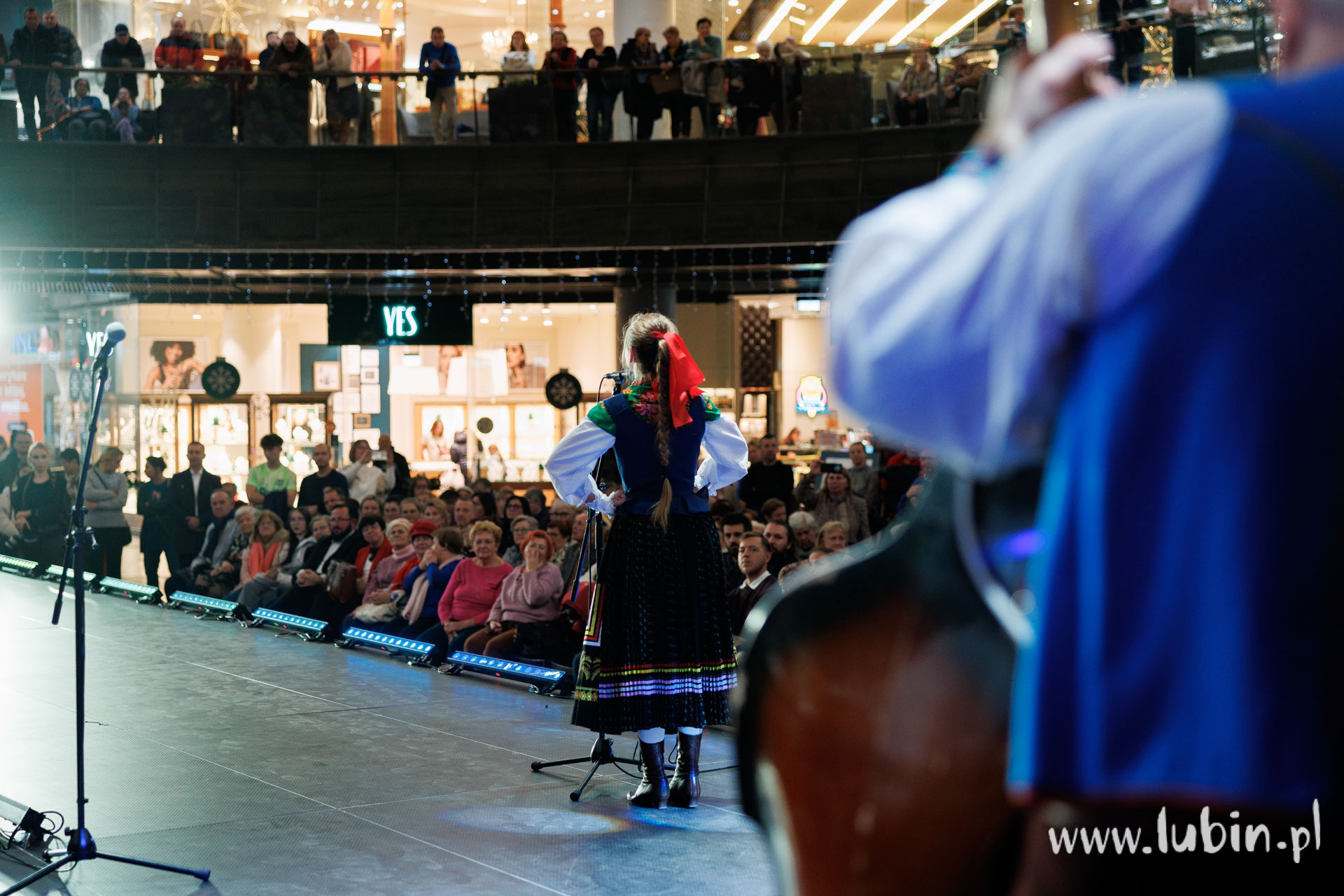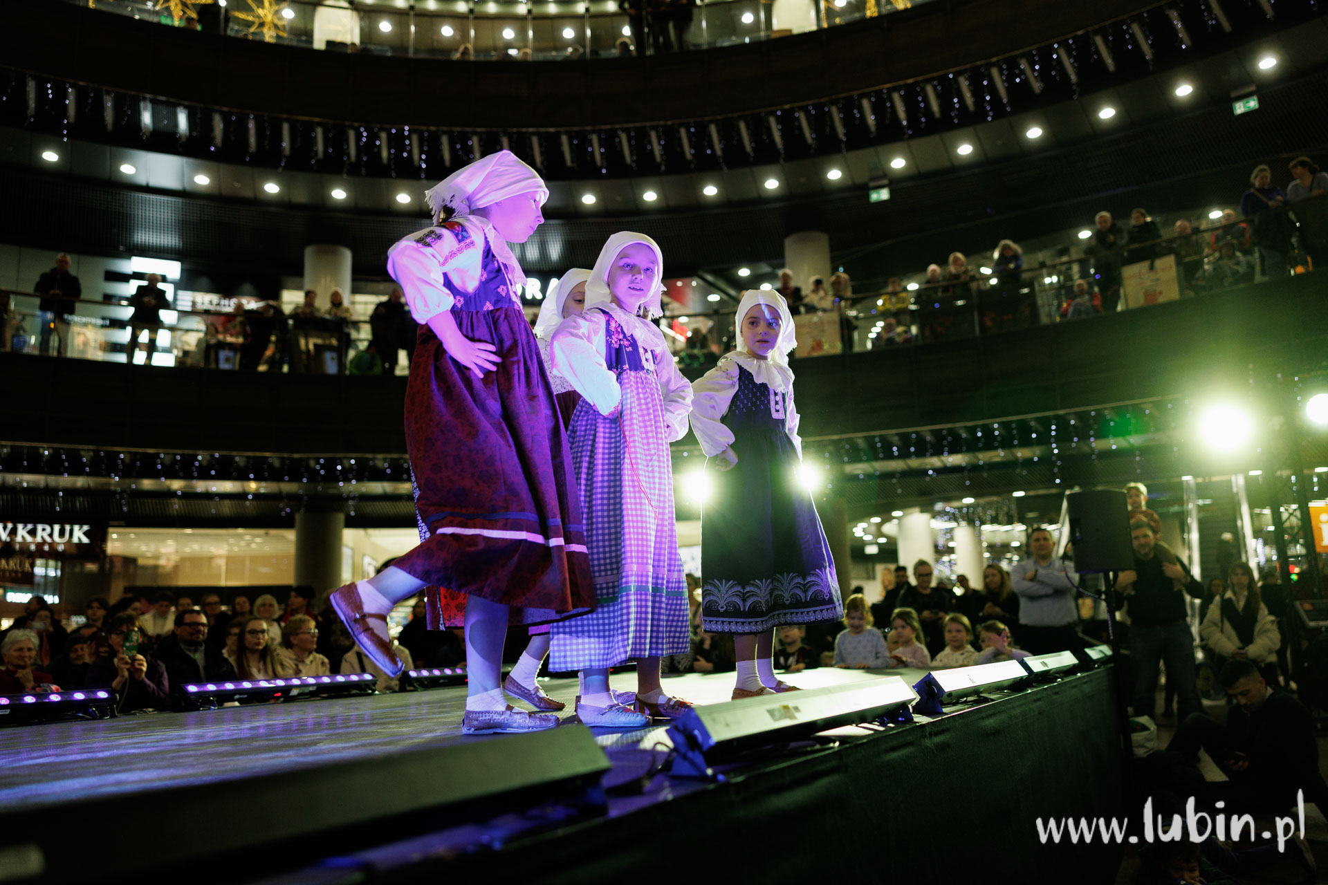 Dziś tej nowoczesności było całkiem sporo. CDT wyszło ze swoim przedsięwzięciem w przestrzeń galerii handlowej Cuprum Arena. W jej atrium stanęła scena i wybieg, na którym odbył się niezwykły pokaz mody i energetyczny koncert Łemkowskiego Zespołu Pieśni i Tańca „Łastiwoczka”. Publiczność zgromadziła się wokół sceny, a także na wyższych piętrach galerii, by na początek zobaczyć kolekcję „Rusynka” Anny Marii Zygmunt, inspirowaną tradycyjnymi ubiorami łemkowskimi.