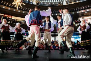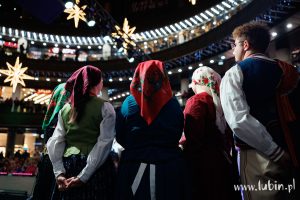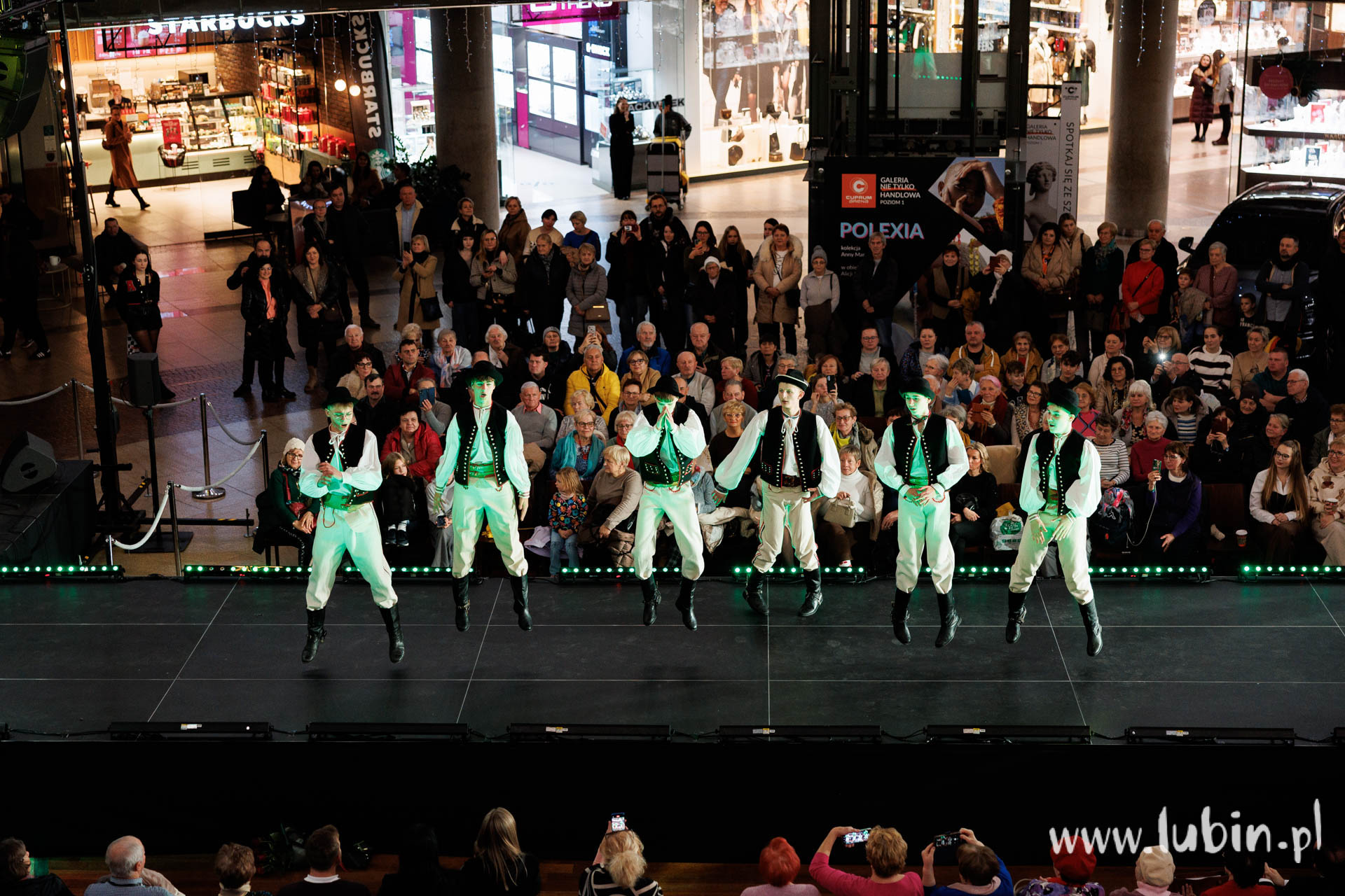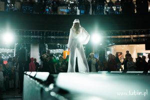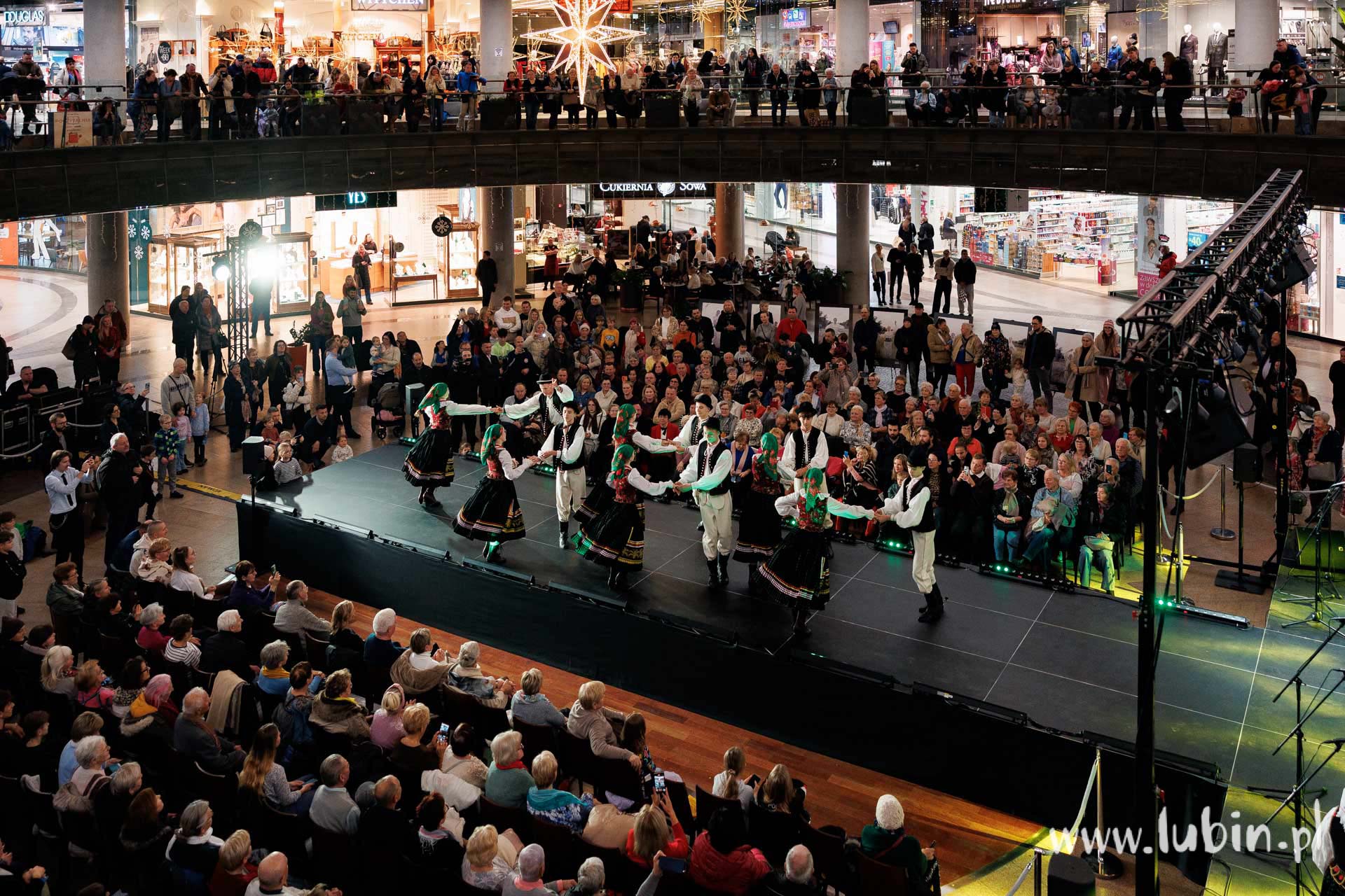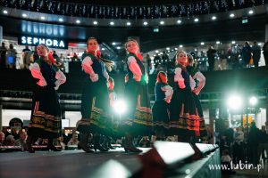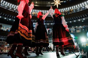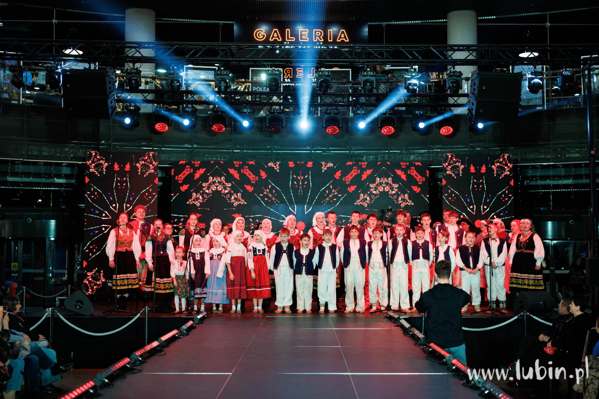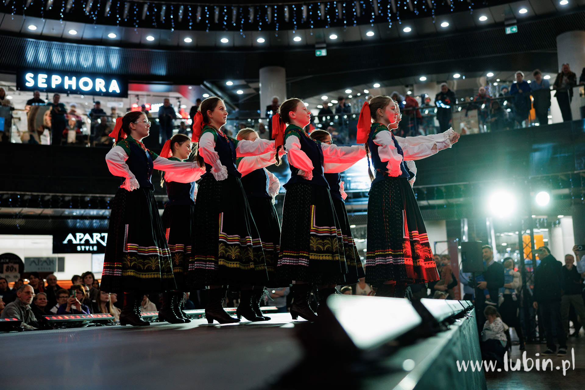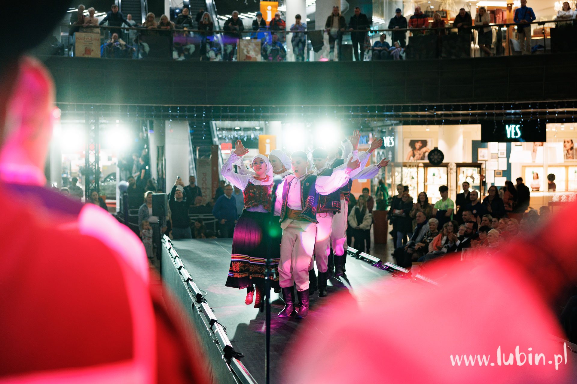 Dziś tej nowoczesności było całkiem sporo. CDT wyszło ze swoim przedsięwzięciem w przestrzeń galerii handlowej Cuprum Arena. W jej atrium stanęła scena i wybieg, na którym odbył się niezwykły pokaz mody i energetyczny koncert Łemkowskiego Zespołu Pieśni i Tańca „Łastiwoczka”. Publiczność zgromadziła się wokół sceny, a także na wyższych piętrach galerii, by na początek zobaczyć kolekcję „Rusynka” Anny Marii Zygmunt, inspirowaną tradycyjnymi ubiorami łemkowskimi.
