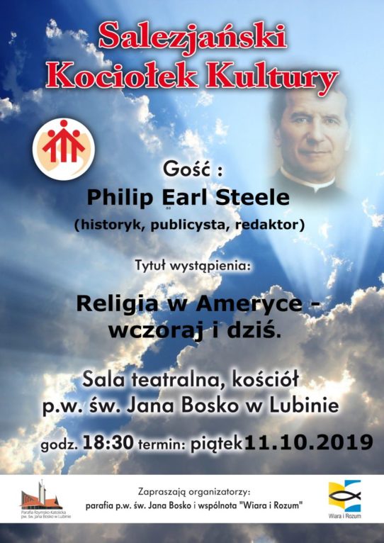 To będzie 73. spotkanie z tego cyklu. Tym razem gościem będzie Philip Earl Steele, amerykański historyk, publicysta i redaktor, który wygłosi prelekcję pod tytułem „Religia w Ameryce – wczoraj i dziś”. Wykład wygłoszony zostanie w języku polskim.