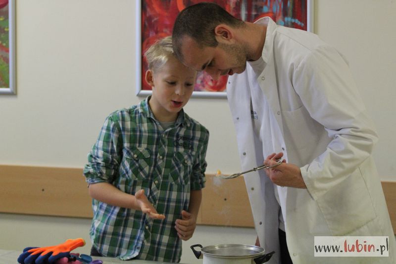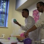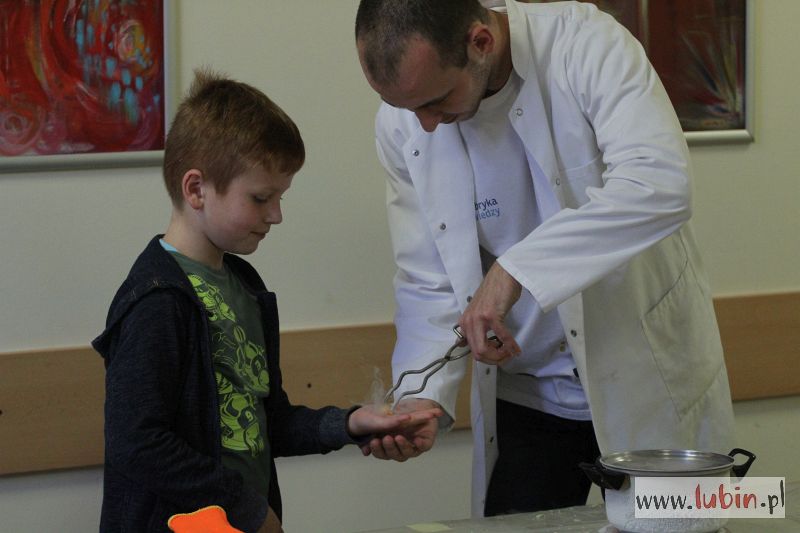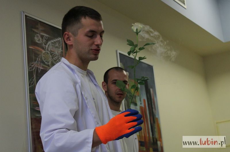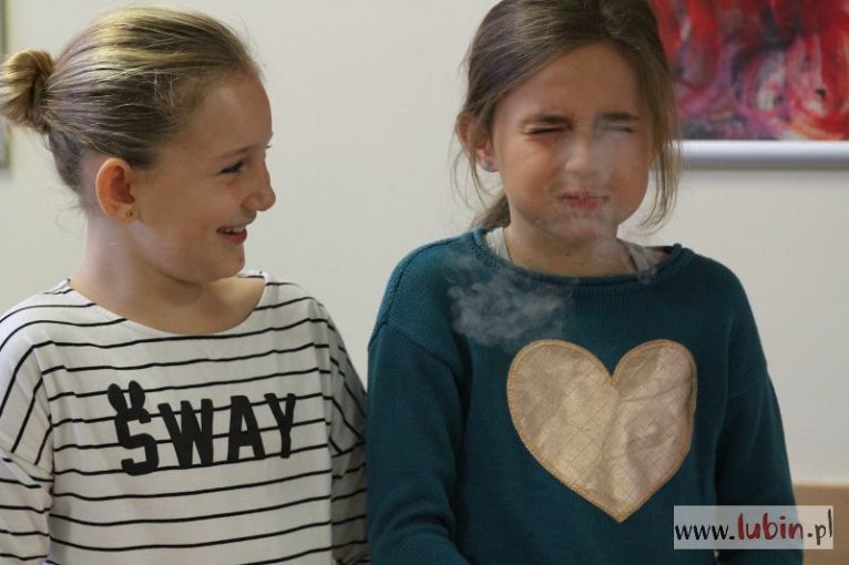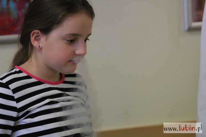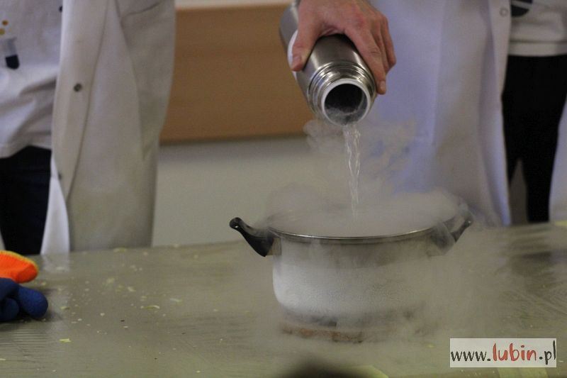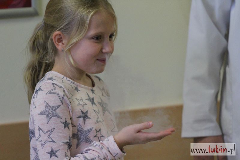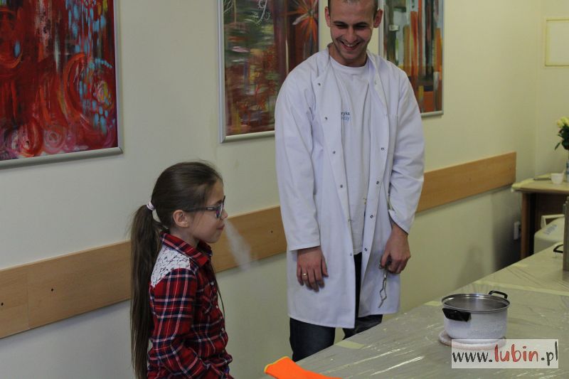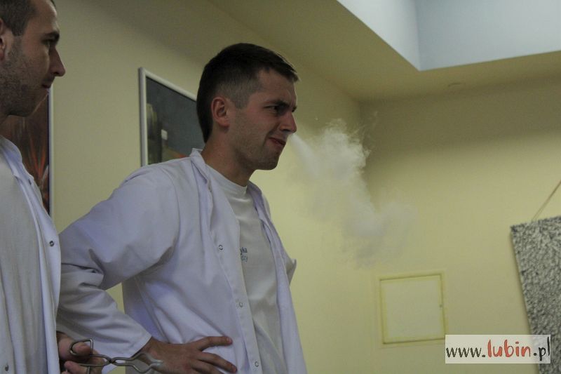 Najbardziej oczywiście przypadł im do gustu eksperyment, który mogli wykonać sami. Każdy chętny mógł spróbować chrupek serowych zanurzonych wcześniej w ciekłym azocie, dzięki czemu z nosów trzecioklasistów poleciał… dym.