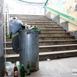 Sytuacja najgorzej wygląda przy zejściu od strony ulicy Legnickiej. Pojemnik na śmieci jest przepełniony, wokół porozrzucane są butelki i kawałki szkła, a w powietrzu unosi się zapach zepsutego jedzenia. Zresztą w całym przejściu leżą przeróżne odpadki, od butelek po napojach po kartonowe opakowania po mleku.