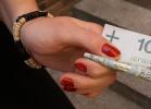 Oszustka ma około 30 lat i krótkie brązowe, proste włosy. Jest szczupłej budowy ciała, ubrana w brązową kurtkę do kolan.