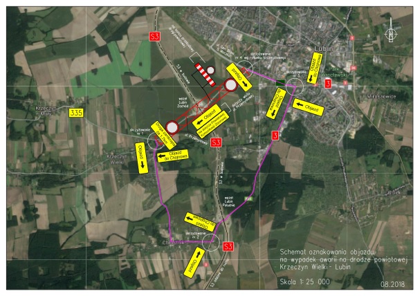 Od obwodnicy, tj. alei generała Stanisława Maczka do węzła drogowego Lubin-Zachód w ciągu drogi S-3, został całkowicie wstrzymany ruch.