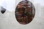 Te słowa brzmią dość przekornie, bo witryny centrum zostały zasłonięte. Pozostawiono jedynie niewielkie otwory. Aby zobaczyć, co jest ukryte za papierem, trzeba podejść blisko do szyby i zajrzeć przez wycięty w papierze otwór.