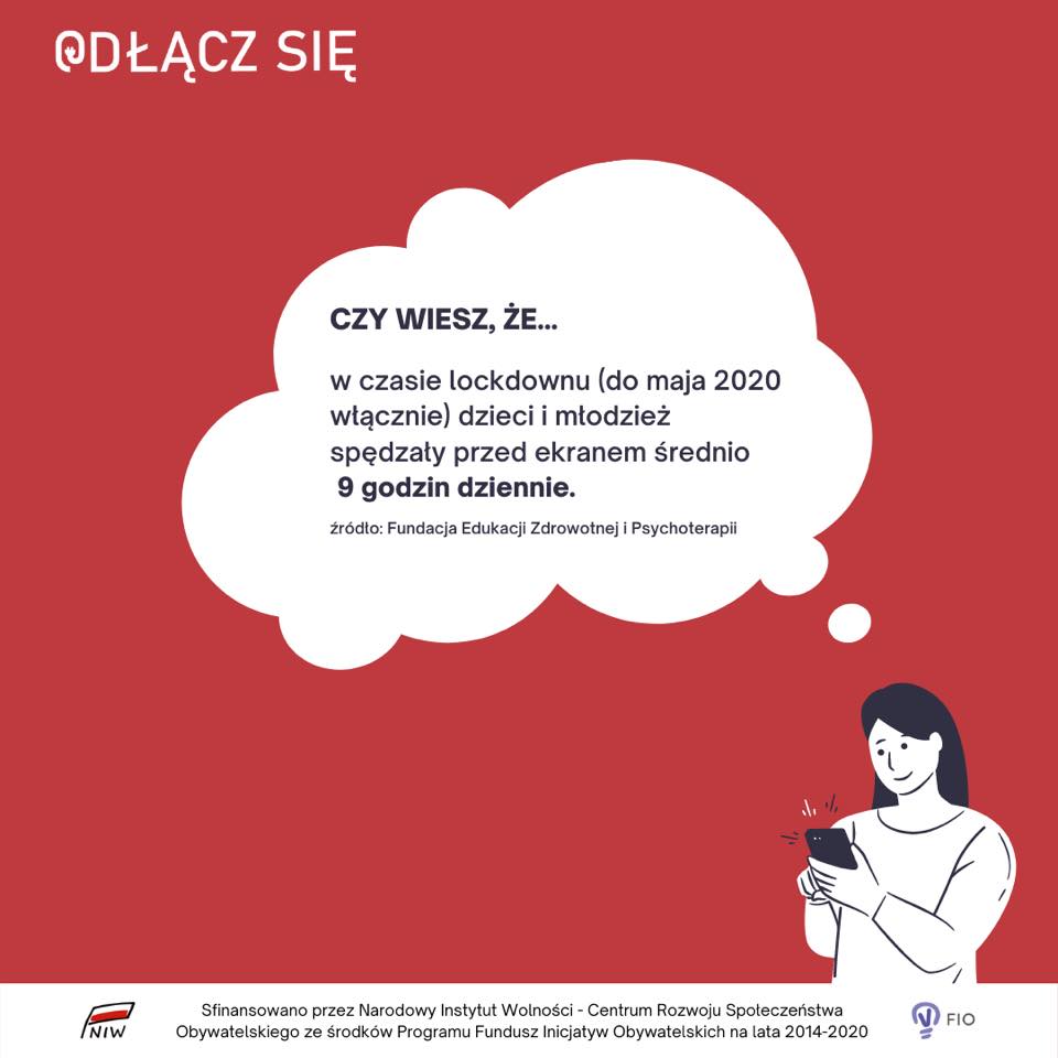 Oprócz spotkań w szkołach, członkowie Stowarzyszenia prowadzą też aktywną kampanię w mediach społecznościowych. Przeglądając ich profil dowiemy się na przykład, że w czasie pełnego lockdownu, tylko do maja, dzieci i młodzież spędzały średnio aż 9 godzin dziennie z telefonem w ręce! Co zrobić, by zachęcić ich do odłożenia smartfonu choć na chwilę i zajęcia umysłu czymś innym? Zawsze można wyjść na spacer, poczytać książkę, porozmawiać z inną osobą…