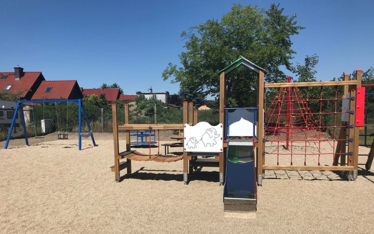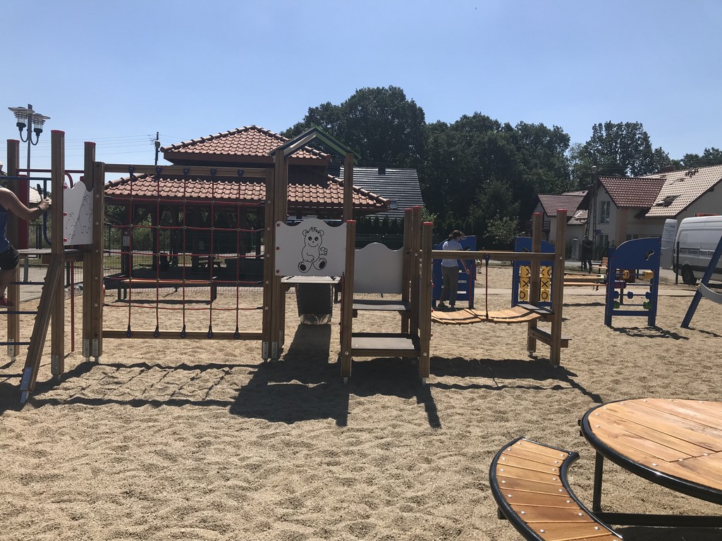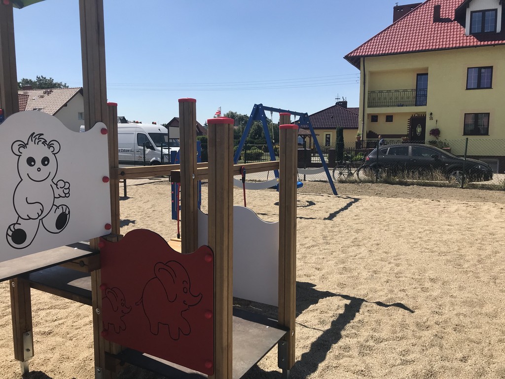 Drewniana piaskownica, huśtawka bocianie gniazdo, liczydło, kółko i krzyżyk, labirynt, linowa piramida czy karuzela „Młynek” – to tylko część nowych zabawek, z których mogą już korzystać najmłodsi mieszkańcy Obory. Zakończyła się realizacja zadania pod nazwą „Przebudowa istniejącego placu zabaw w miejscowości Obora”.