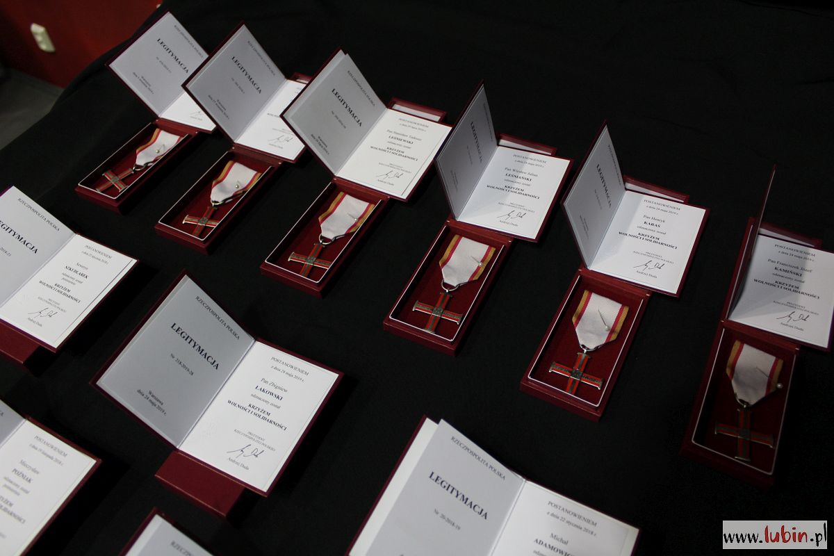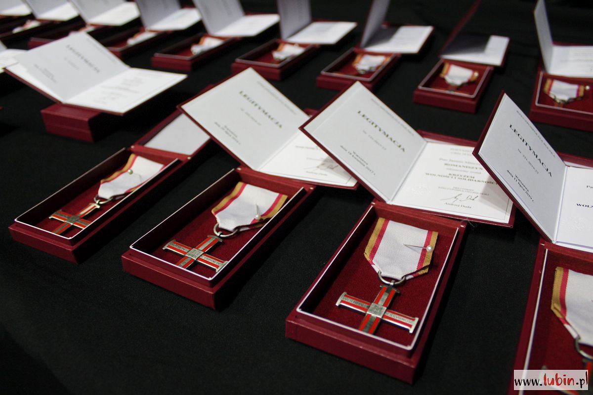 20 mieszkańcom naszego regionu przyznano Krzyże Wolności i Solidarności. Odznaczono również pośmiertnie ofiary Zbrodni Lubińskiej: Michała Adamowicza, Mieczysława Poźniaka i Andrzeja Trajkowskiego. – Dzisiejsza uroczystość jest momentem, kiedy państwo polskie spłaca dług zaciągnięty u tych wszystkich ludzi, którzy w latach komunistycznego zniewolenia położyli na szali swoją wolność osobistą, dobro swoich rodzin, a potem przez lata żyli w zapomnieniu – napisał w liście skierowanym do odznaczonych prezes Instytutu Pamięci Narodowej Jarosław Szarek.
