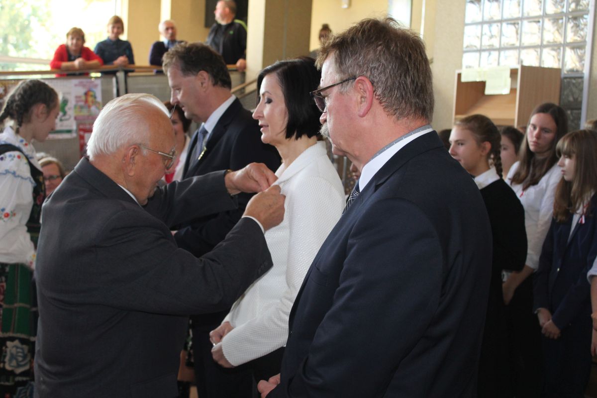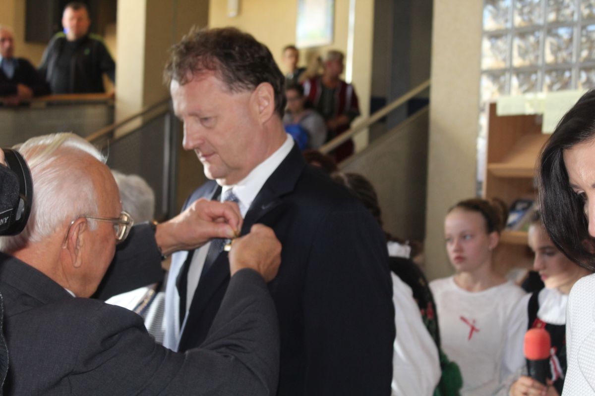 Po wspólnym odśpiewaniu hymnu Sybiraka honorowe wyróżnienia wręczył wiceprezes Związku Sybiraków Władysław Kiemski. Oprócz prezydenta otrzymali je starosta lubiński Adam Myrda, wójt gminy Lubin Tadeusz Kielan oraz dyrektor Zespołu Szkół Sportowych w Lubinie Barbara Szymańska.