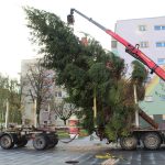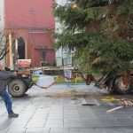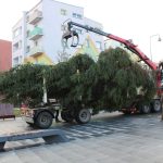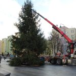 Choinkę przetransportowano ciężarówką. Przy pomocy ramienia dźwigu ustawiono ją na specjalnie do tego przygotowanym miejscu.