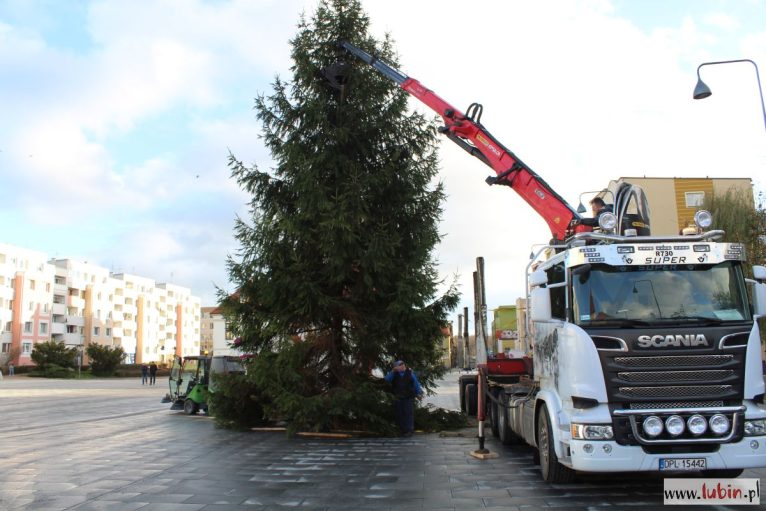 Na lubińskim rynku stanęła ogromna choinka. 15-metrowe drzewo przyjechało do miasta z Nadleśnictwa Lubin, a dokładnie z Koźlic. Dziś rozpocznie się jego ubieranie, a już w czwartek, 6 grudnia, rozbłyśnie ono po raz pierwszy.