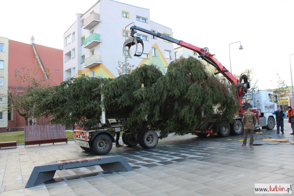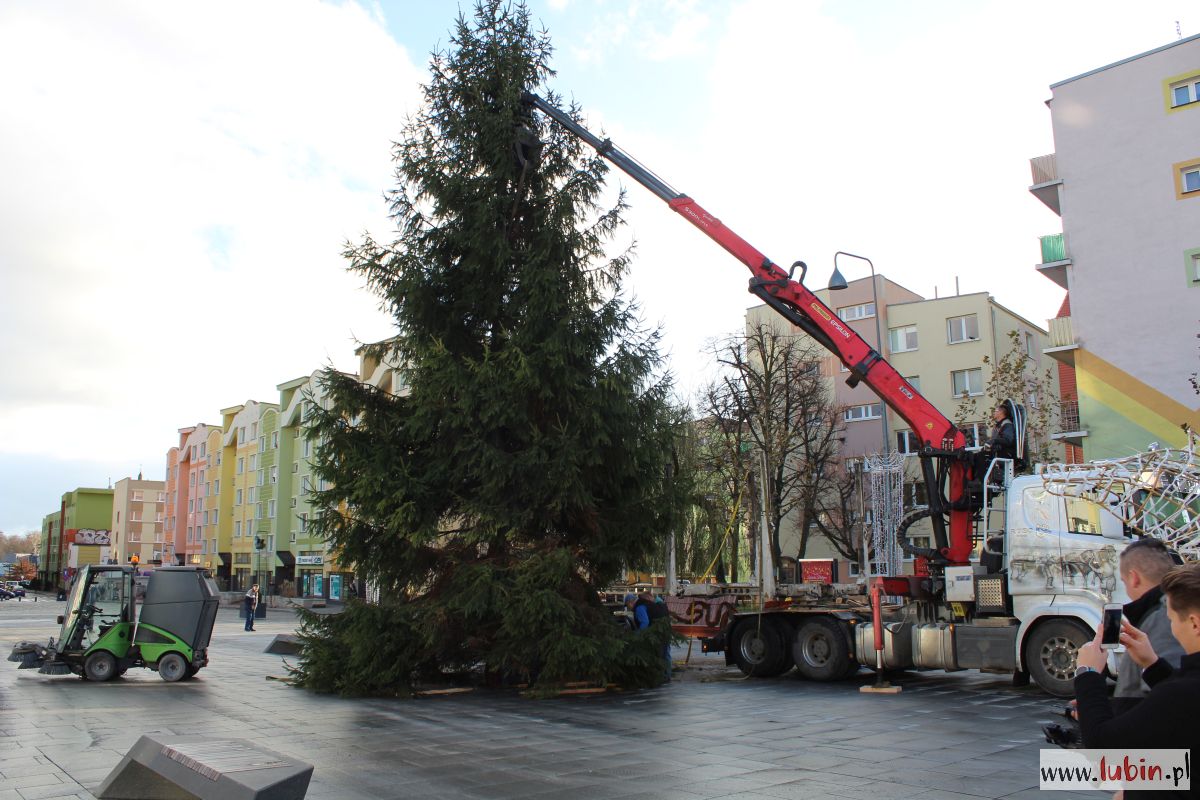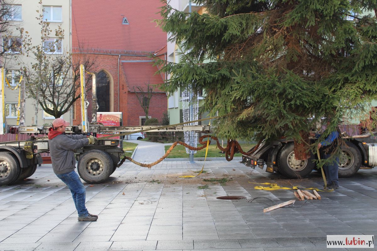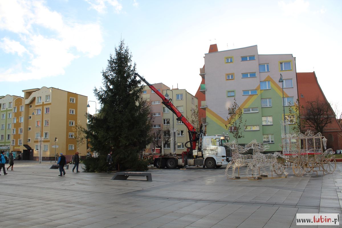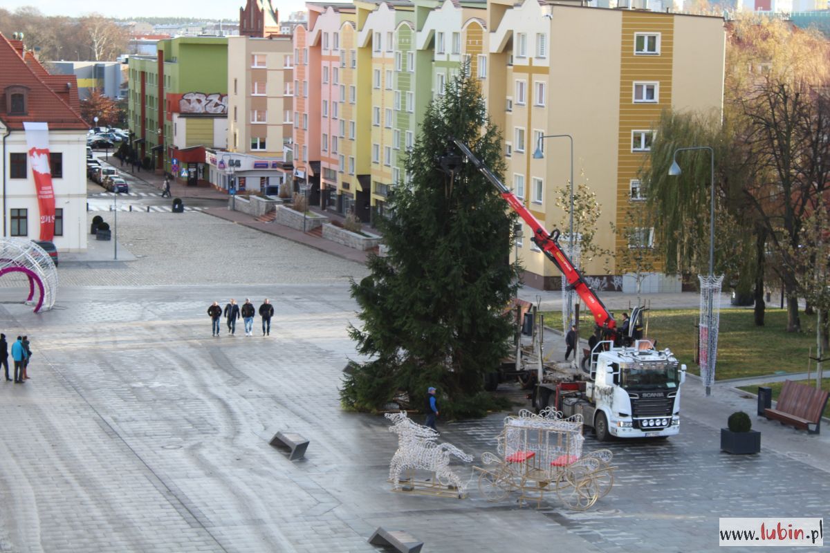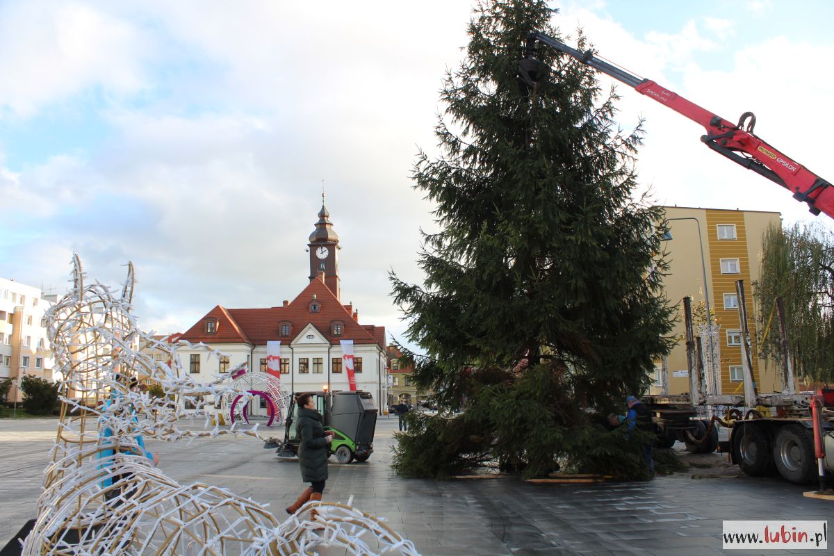 Na lubińskim rynku stanęła ogromna choinka. 15-metrowe drzewo przyjechało do miasta z Nadleśnictwa Lubin, a dokładnie z Koźlic. Dziś rozpocznie się jego ubieranie, a już w czwartek, 6 grudnia, rozbłyśnie ono po raz pierwszy.