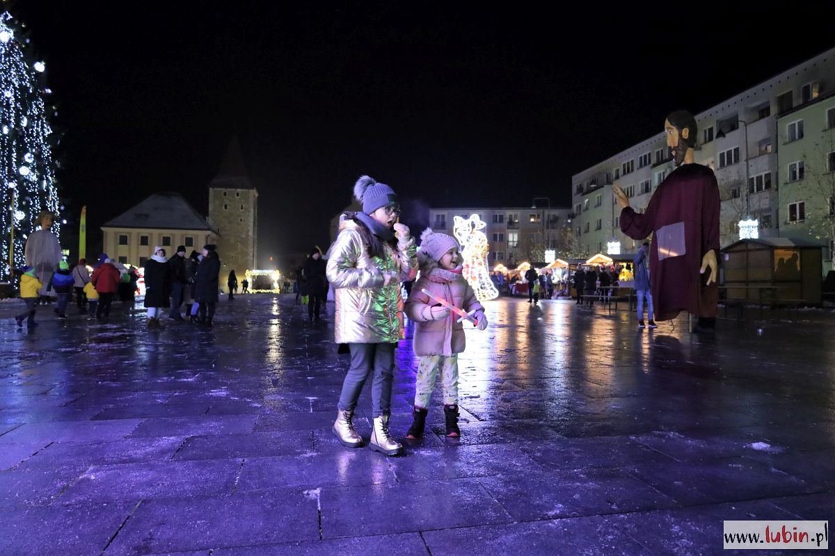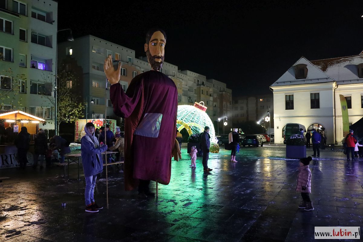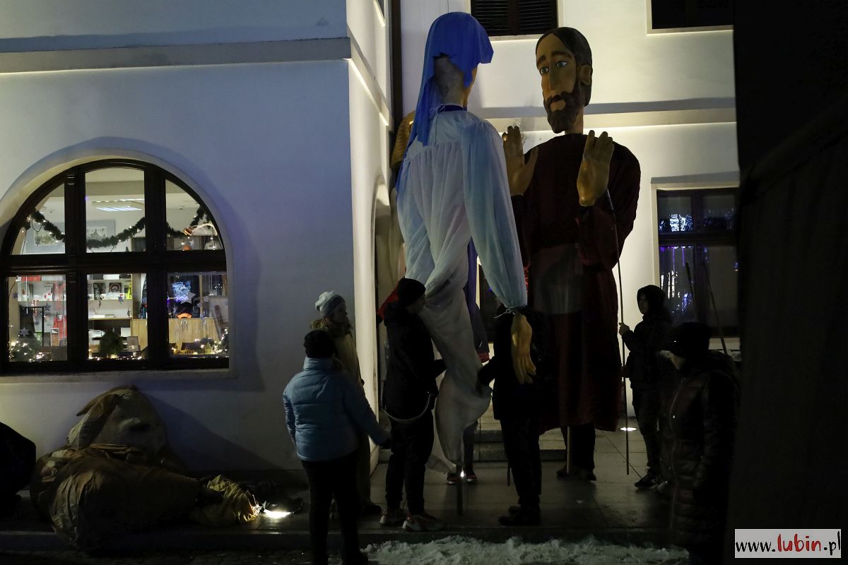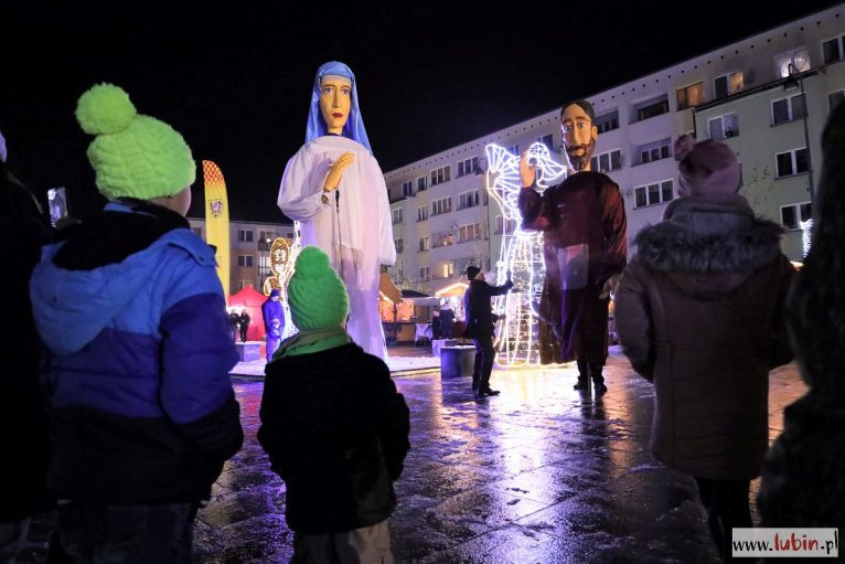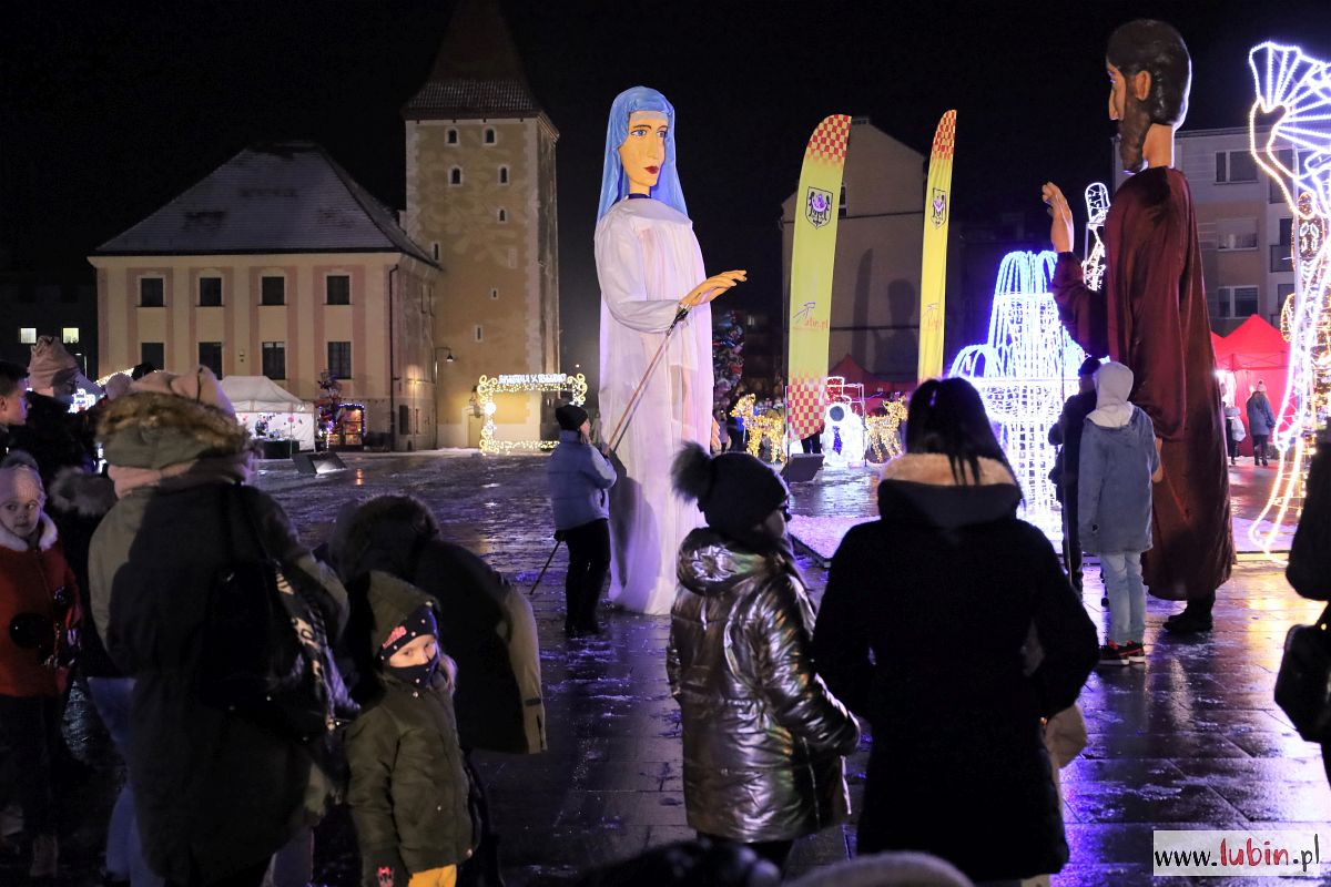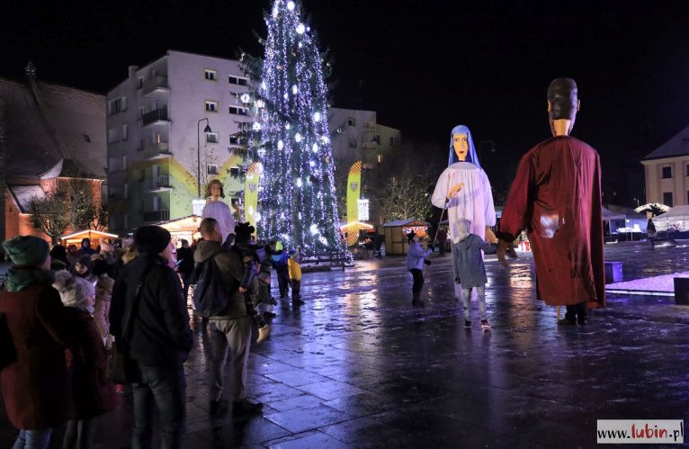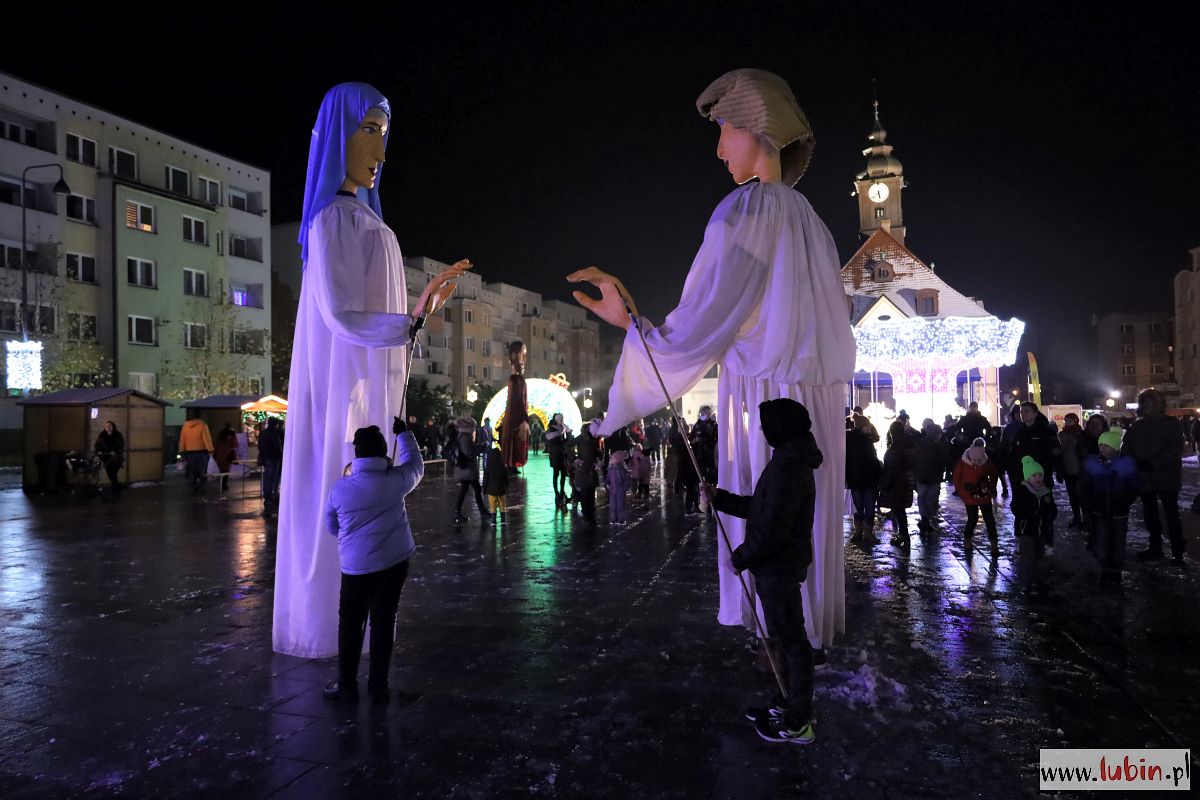 Świąteczny kiermasz gości na lubińskim rynku od poniedziałku. Był już Mikołaj, odpalenie bożonarodzeniowych iluminacji i sporo muzyki. Dziś przed ratuszem pojawiły się zaś ogromne lalki Maryi, Józefa, Anioła i osiołka, animowane przez jedenastu aktorów. Lubinianie obejrzeli przedstawienie nawiązujące do narodzin Jezusa i historii Józefa oraz Maryi w wykonaniu Wrocławskiego Teatru Formy.