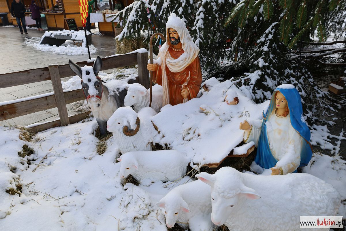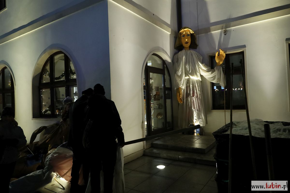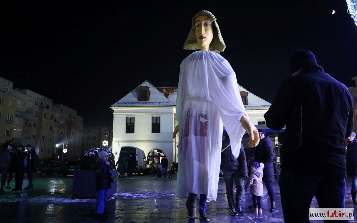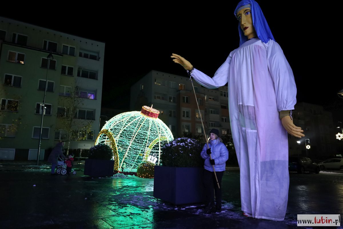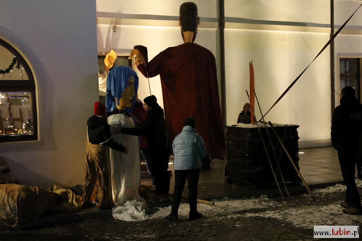 Świąteczny kiermasz gości na lubińskim rynku od poniedziałku. Był już Mikołaj, odpalenie bożonarodzeniowych iluminacji i sporo muzyki. Dziś przed ratuszem pojawiły się zaś ogromne lalki Maryi, Józefa, Anioła i osiołka, animowane przez jedenastu aktorów. Lubinianie obejrzeli przedstawienie nawiązujące do narodzin Jezusa i historii Józefa oraz Maryi w wykonaniu Wrocławskiego Teatru Formy.
