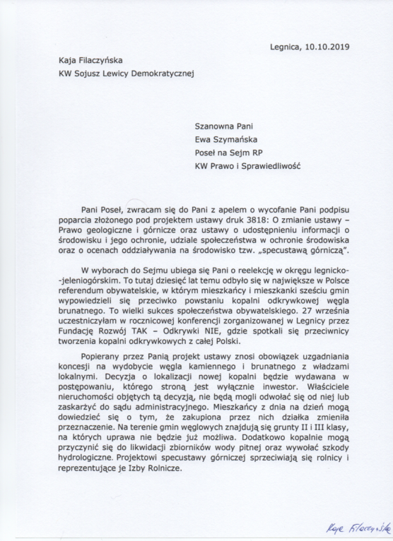 W najbliższą niedzielę 13 października odbędą się wybory parlamentarne. Przedstawiciele Koalicji Obywatelskiej uważają, że ustawa przygotowana przez Prawo i Sprawiedliwość, którą parlamentarzyści mają procedować w dzień po wyborach, będzie pozwalała na budowę kopalni w naszym regionie. W związku z tym apelują do przedstawicieli partii rządzącej o wyrzucenie projektu do kosza.