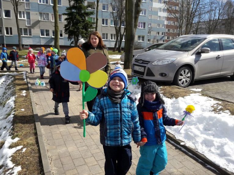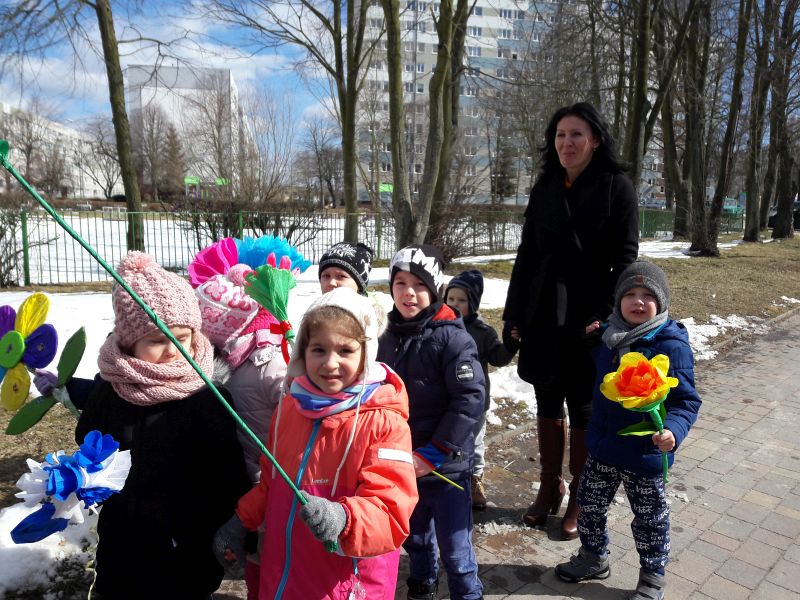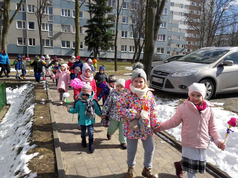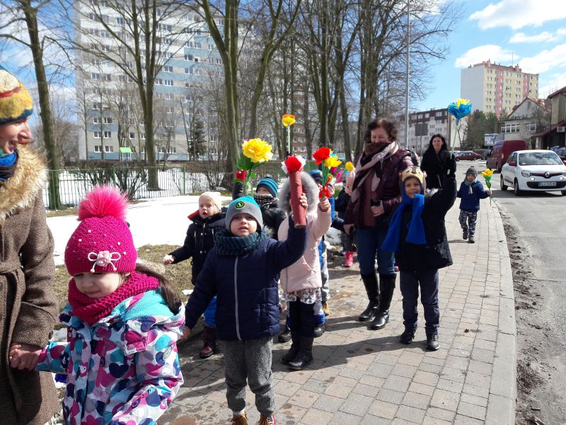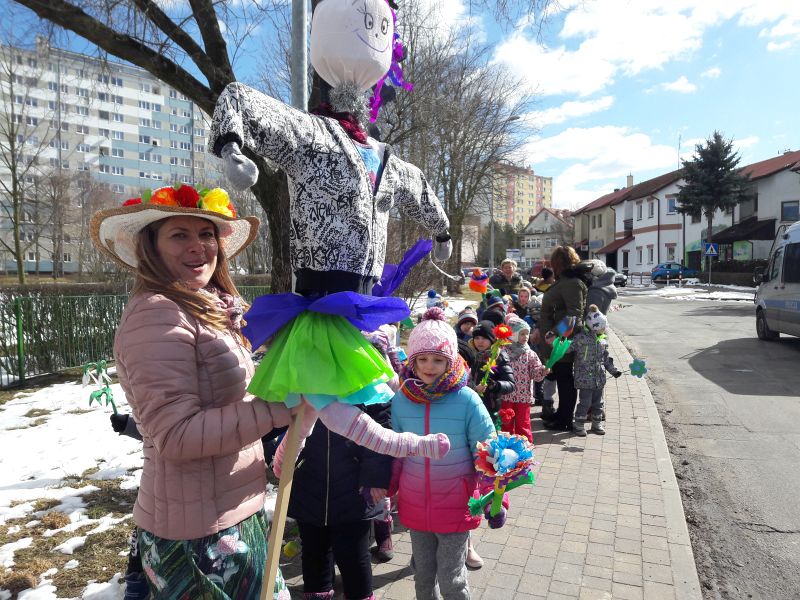 Po obejrzeniu teatrzyku w wykonaniu dzieci, przedszkolaki razem z Panią Wiosną i Marzanną przeszły barwnym korowodem wokół przedszkola. Dzieci radośnie śpiewały wiosenne piosenki oraz skandowały hasła: „Precz zimo zła” czy „Witaj wiosno”.