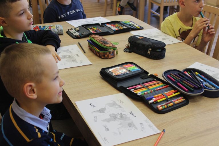 Klasa IIa ma już za sobą dwa warsztaty, podczas których uczniowie zapoznali się z fragmentami książki Michała Rusinka „Kefir w Kairze” i wykonali wiele ciekawych zadań, podróżując z bohaterem literackim po całym świecie. Drugoklasiści poszerzyli swoją wiedzę geograficzną i przećwiczyli umiejętności językowe, a wykonując różne prace plastyczne udowodnili, że są pomysłowi i kreatywni. Wszystkiemu towarzyszyła oczywiście dobra zabawa, o którą zadbali prowadzący warsztaty, czyli Barbara Godlewska i Chrystian Halicz.