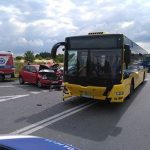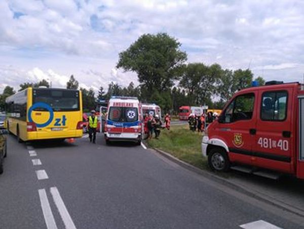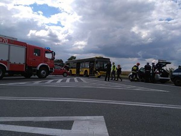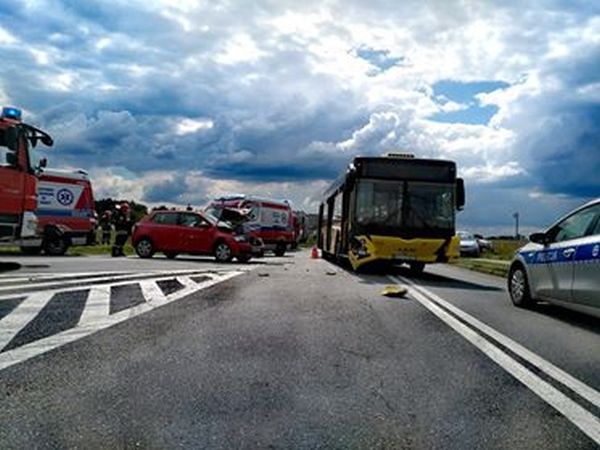 Osobowa skoda zderzyła się z autobusem komunikacji publicznej. W wyniku wypadku poszkodowanych zostało jedenaście osób.