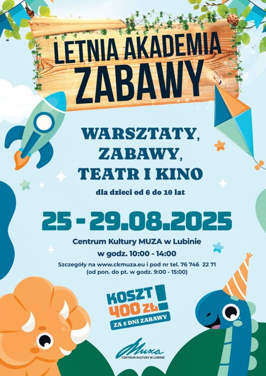 Jeśli nie macie pomysłu, jak spędzić ostatni tydzień wakacji, Muza zaprasza na Letnią Akademię Zabawy. Zajęcia przeznaczone są dla dzieci w wieku 6-10 lat. Zostały ostatnie wolne miejsca.