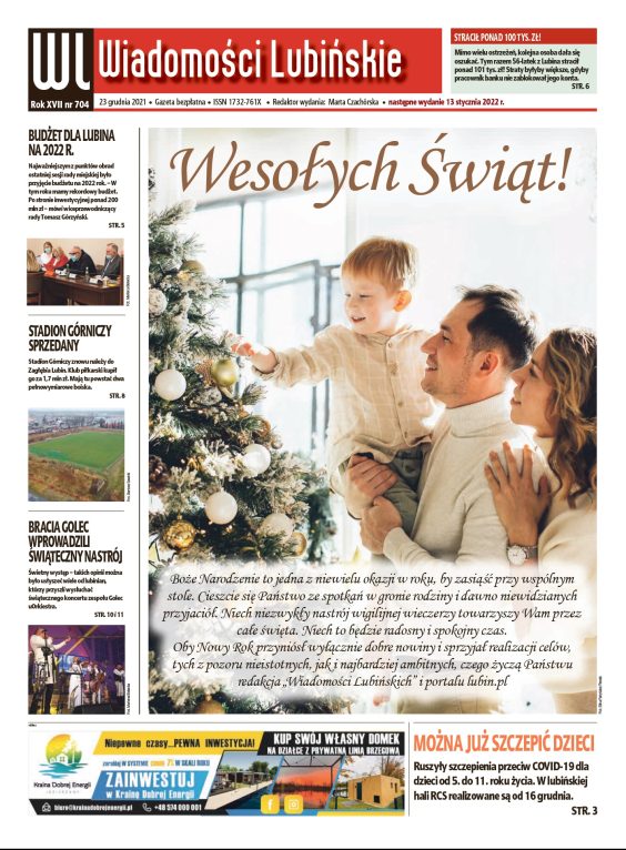 Zapraszamy do lektury! To ostatnie wydanie „Wiadomości Lubińskich” w tym roku. Kolejne ukaże się dopiero 13 stycznia.