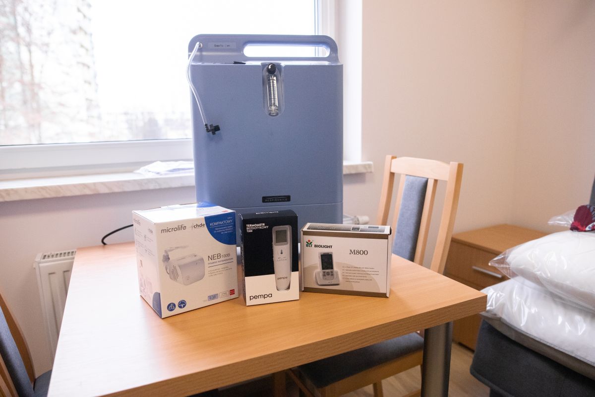 – To jeden z porządniejszych sprzętów dla osób starszych, niepełnosprawnych czy wszystkich mieszkańców, którzy będą przebywać w tym domu. Można powiedzieć, że jest to urządzenie zabezpieczające życie. Oprócz tego mamy też sterylizatory powietrza, pulsometry, urządzenia do mierzenia ciśnienia, czyli podstawowe sprzęty medyczne, które będą tu używane, choć wolałbym, żeby jak najrzadziej. Wszystkie otrzymaliśmy jako darowizny od życzliwych ludzi. Szczególne podziękowania należą się pani Magdzie Podhajskiej, która pomaga nam je pozyskiwać od różnych form – mówi Dariusz Jankowski, prezes Stowarzyszenia Przyjaciół i Rodziców Osób Niepełnosprawnych „Równe Szanse”.