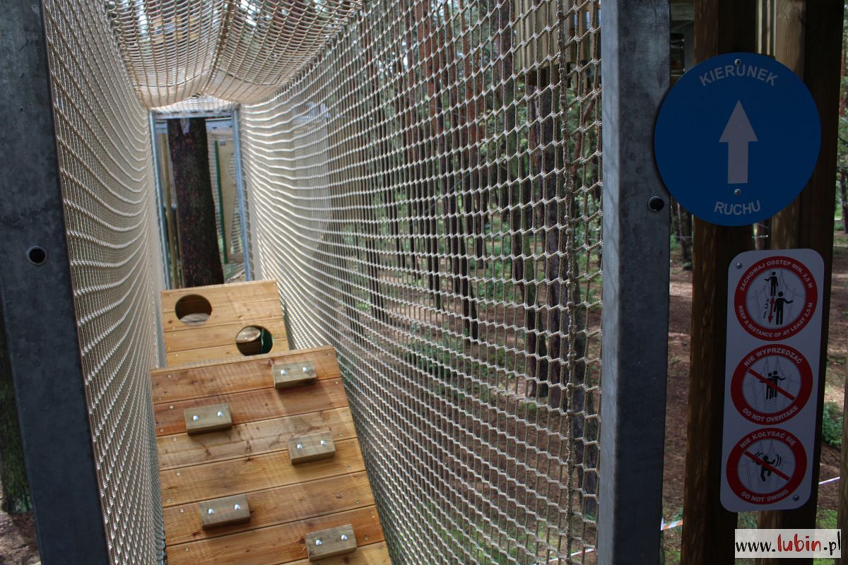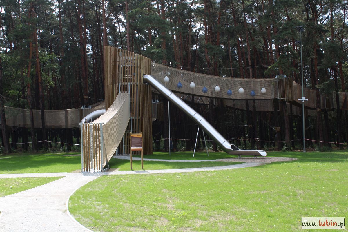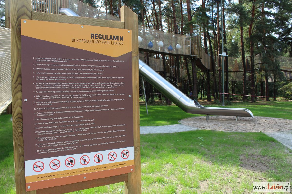 Park Linowy, znajdujący się w parku Leśnym w Lubinie, jest długi na 260 metrów i wysoki na 13. To w sumie 18 przęseł o różnym stopniu trudności. Trasa niższa przeznaczona jest dla dzieci od 7 lat, a wyższa dla osób od 12. roku życia. Po trasach będzie można poruszać się tylko w jednym kierunku. Z obu wydostać się będzie można zjeżdżając po ślizgawce lub przechodząc po skomplikowanej siatce. Oczywiście młodsze dzieci powinny być pod opieką rodzica, dziadka, bądź innego dorosłego.