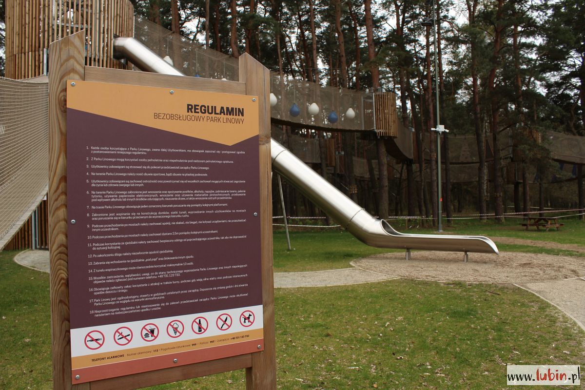 Przypomnijmy, że lubińskiego Parku Linowego można korzystać bezpłatnie. Dzieci do 12. roku życia powinny być pod opieką dorosłego. Gdy się tam wybieramy, warto ubrać się wygodnie i założyć obuwie sportowe.