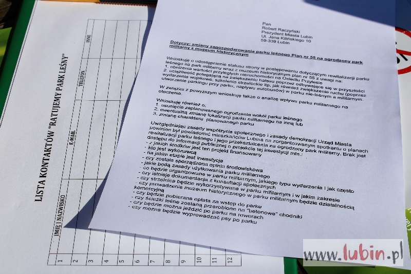 W parku zbierano też podpisy osób, które są przeciwne modernizacji. Dziś na liście podpisało się już około 800 osób. W najbliższych dniach petycja ma trafić na biurko prezydenta miasta. Jacek Mamiński, rzecznik prezydenta Lubina przypomina, że w czasie przebudowy parku Wrocławskiego też były protesty niezadowolonych mieszkańców. – Później ludzie się przekonali i teraz chętnie spędzają tam czas. Naszym zdaniem teraz będzie podobnie. Kiedy nieufni zobaczą efekty modernizacji, z pewnością też im się spodoba – zauważa.
