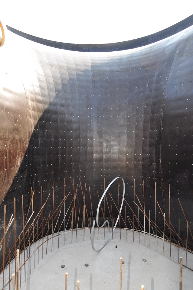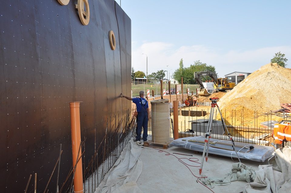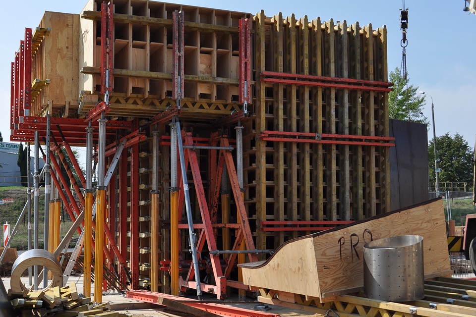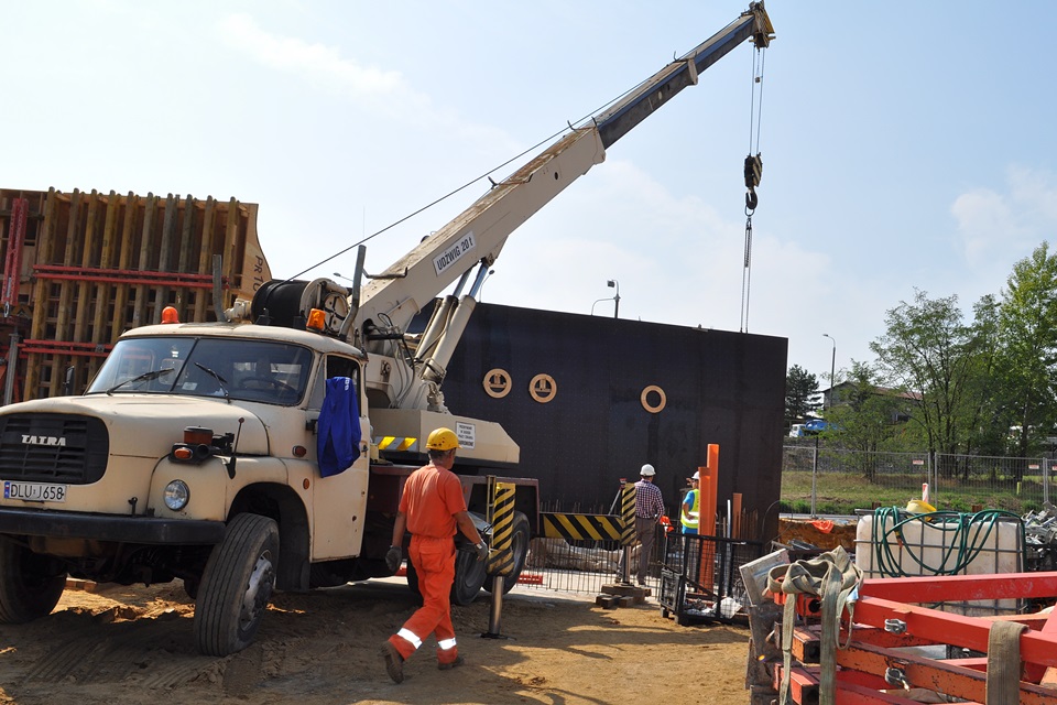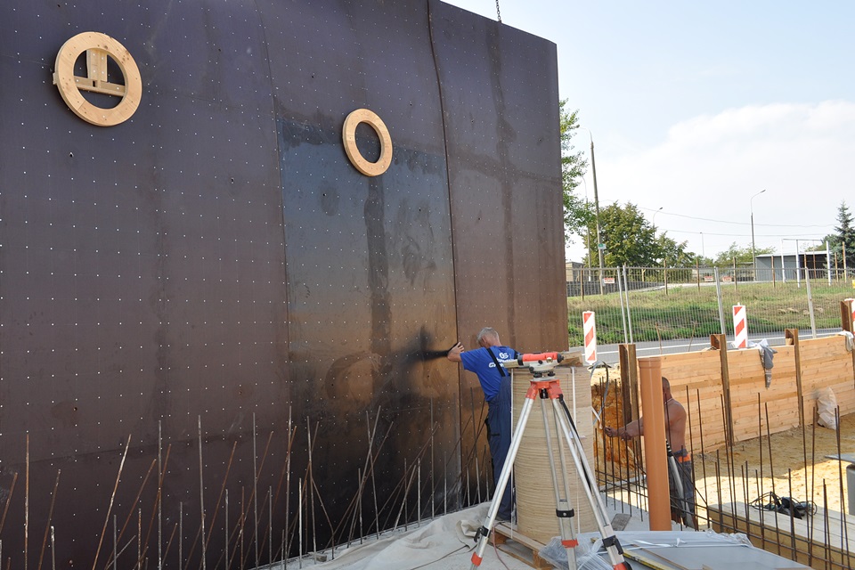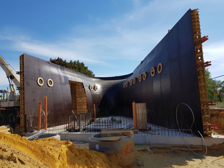 Najpierw postawiono mur oporowy, który dodatkowo odgradza teren przewidziany na miejsca postojowe od fragmentu ulicy Wołowskiej, także planowanej do przebudowy. Ostatnio zaś pojawił się dziób z szalunków. Ponieważ kadłub pozaginany jest w trzech płaszczyznach, okazało się, że do budowy dziobu najlepiej będzie wykorzystać te same metody, co przy budowie prawdziwych statków.