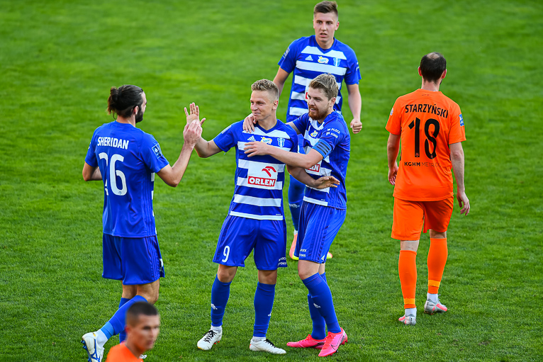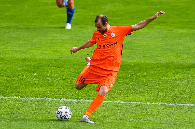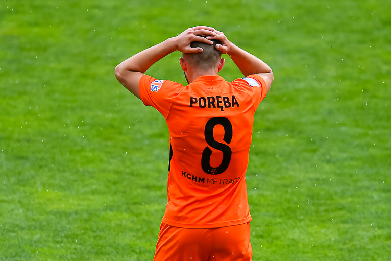 W 29 minucie po rzucie rożnym kolejną szansę na bramkę mieli Miedziowi. Piłkę po dośrodkowaniu przejął Szysz i ponownie zagrał ją w pole karne, najwyżej wyskoczył kapitan zespołu Zagłębia i po uderzeniu głową, piłka zatrzymała się na słupku.