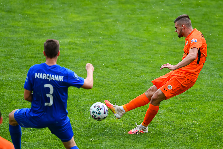 Aktywny Szysz w 33 minucie spotkania miał kolejną sytuację na otwarcie wyniku spotkania, jednak minimalnie spóźnił do nadlatującej piłki.