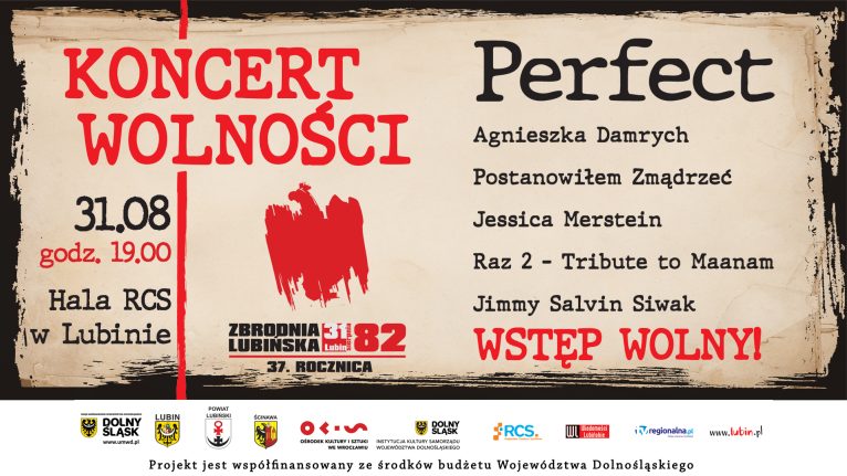 Jak zwykle z okazji rocznicy Zbrodni Lubińskiej w naszym mieście odbędzie się koncert. Tym razem gwiazdą wieczoru będzie zespół Perfect. Wstęp – co jest już tradycją – będzie dla wszystkich bezpłatny.